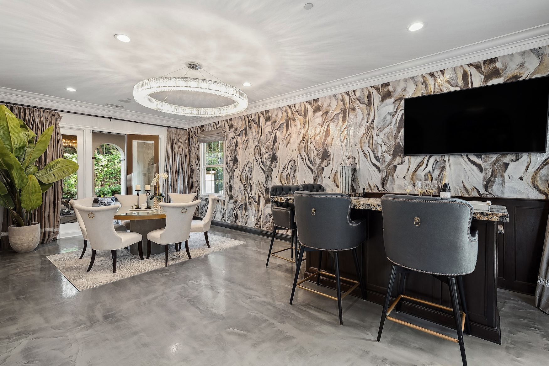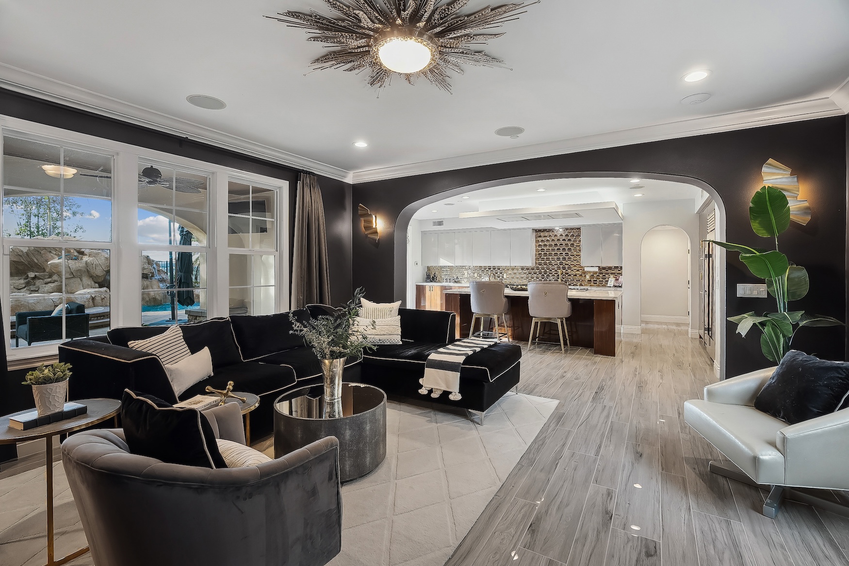 Welcome to an unparalleled luxury oasis nestled in the highly sought-after, guard-gated community of Covenant Hills in Ladera Ranch. This exceptional entertainer's dream home, situated at the end of a cul-de-sac, welcomes you with an elegant extended driveway, offering both privacy and convenience upon arrival. As you step inside the expansive 4,511 square feet of elegantly designed living space, you'll be enveloped in natural light that highlights the home’s sophisticated modern design. The high-end flooring and finishes add to the immaculate aesthetic, complemented by a fabulous open staircase. Every detail has been meticulously curated to ensure the ultimate luxury living experience, enhanced by lush canyon views from every room. The heart of the home reveals an exquisitely remodeled gourmet chef’s kitchen. Here, culinary dreams come to life with a generous quartz island, a Viking Professional 12-burner range, a built-in Sub-Zero glass door refrigerator, and a built-in freezer. The kitchen continues to impress with a Viking double oven, a capacious walk-in pantry, and ample sleek cabinetry featuring high-quality finishes and a custom backsplash, all perfectly suited for culinary enthusiasts. Flow seamlessly from the stunning interior to an entertainer’s tropical paradise in the backyard. A custom-designed lagoon-style heated saltwater pool with a slide and cascading water features serves as the centerpiece. Gather around the spacious spa or the welcoming fire pit. Enjoy the surround sound or watch your favorite shows on one of the multiple TVs. Further enhance your outdoor living experience with a fully equipped kitchen and lounging area, complete with a bar and built-in barbecue. An additional courtyard provides a tranquil retreat, complete with a cozy outdoor fireplace. The luxurious home extends its opulence to the owner's suite—a sanctuary complete with a private retreat and an airy loft, currently utilized as a gym and office space. The home is also fitted with a whole-house water filtration system, ensuring every drop meets the highest standards. Reside in unparalleled luxury, comfort, and modernity in this one-of-a-kind Covenant Hills home.