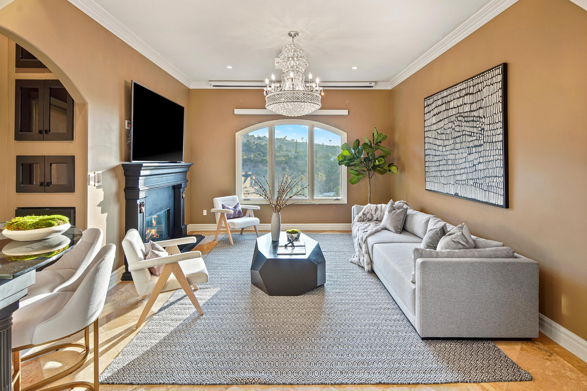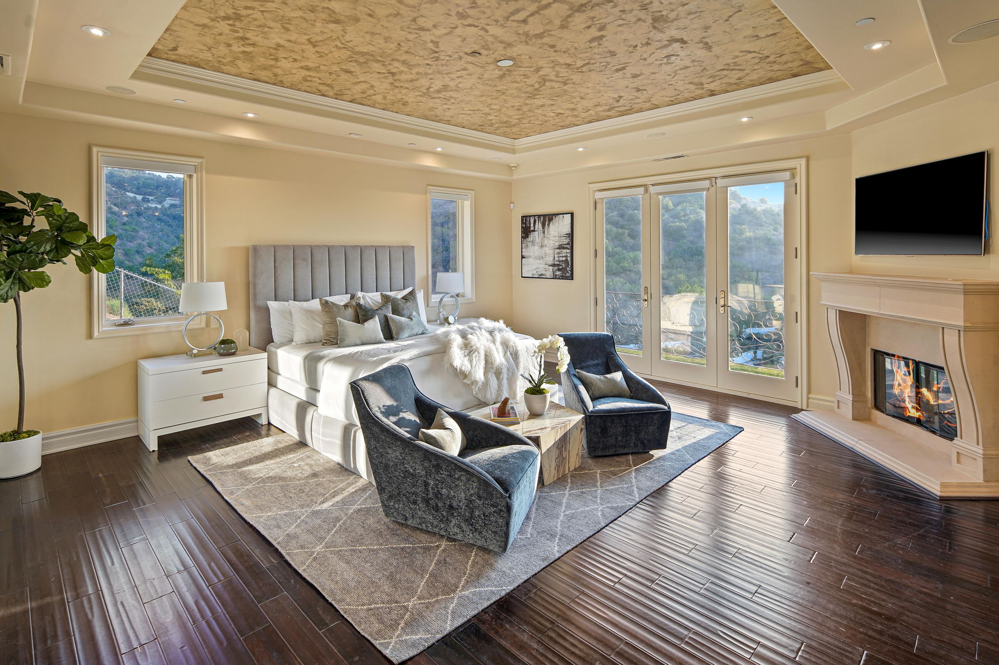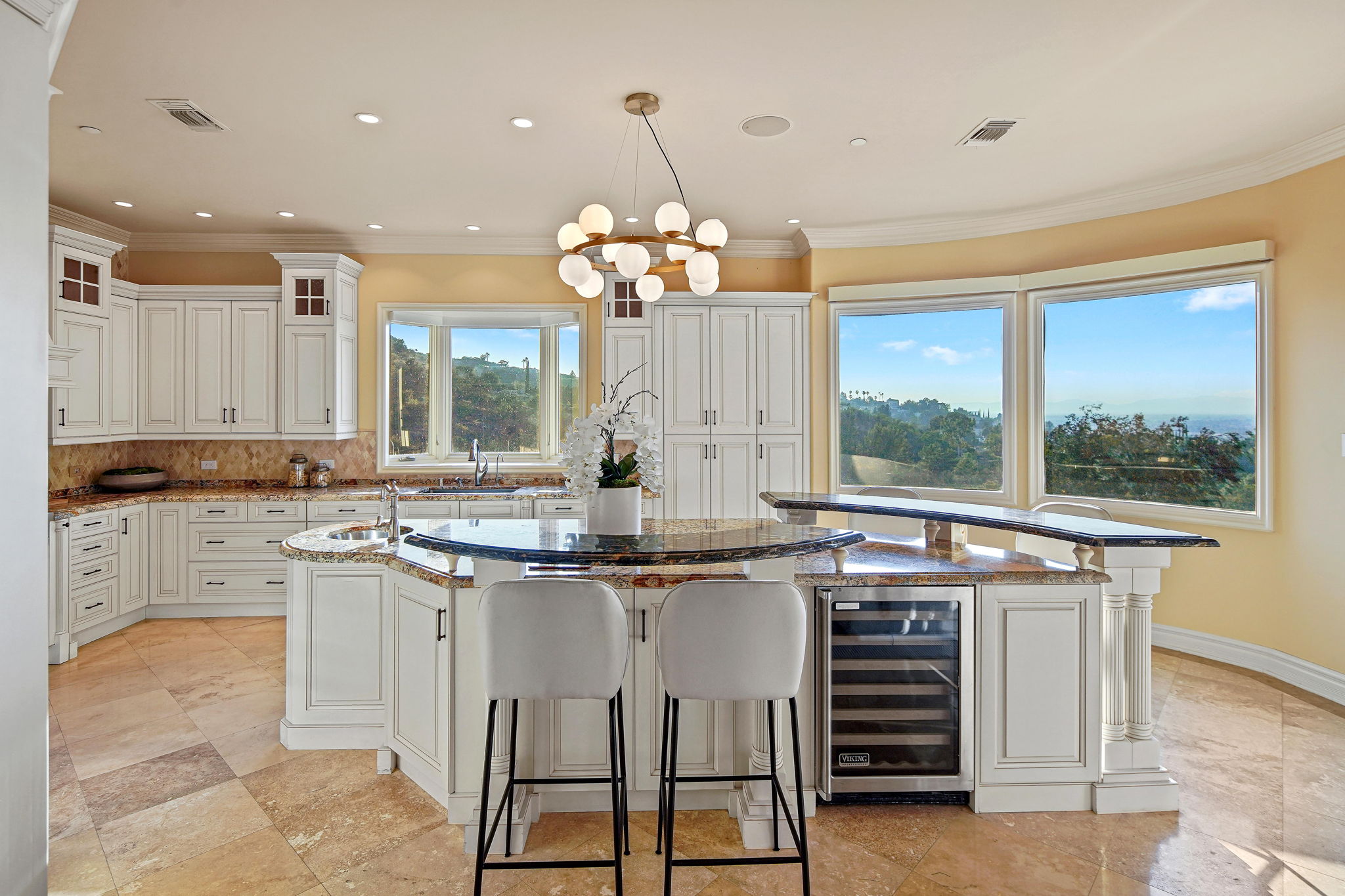 Gracing the top of one of the most sought-after streets in Sherman Oaks, this 4 bed, 5 bath estate boasts impressive panoramic views of the canyons and city lights, astounding finishes and design, and over 3,800 sq. ft. of living space. The home's grand scale creates an abundance of natural light, the chef's kitchen offers sleek custom cabinetry, a huge granite island, and top-of-the-line appliances. The owner's suite features an impressive entry, enchanting valley views, and a large walk-in closet. Additional bedrooms are replete with en-suite bathrooms, oversized closets, and private balconies with canyon views. An entertainer's paradise, the upper patio opens to a fire pit and a luxurious outdoor dining area. The lower patio features a stunning saltwater pool with ample lounge space. Get in touch with nature exploring the beautifully terraced and landscaped yard with serene lounge areas, beautiful ambient lighting, and a lovely gazebo perfect for entertaining and relaxation. 2-car garage.