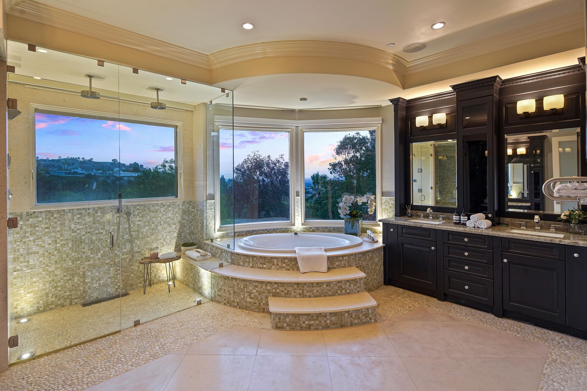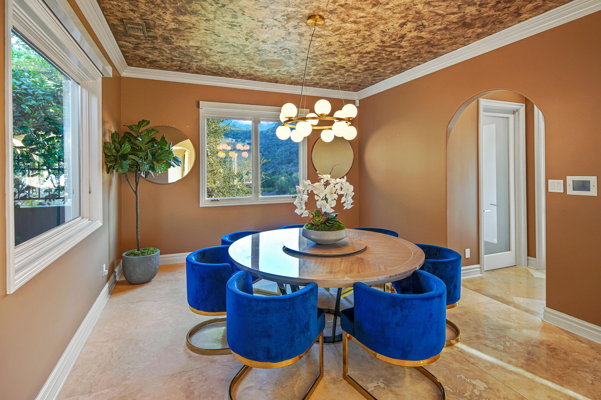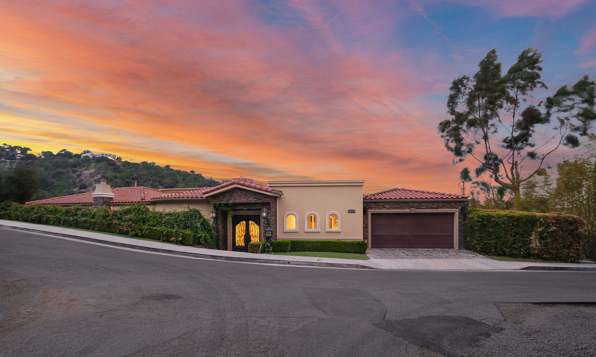 Gracing the top of one of the most sought-after streets in Sherman Oaks, this 4 bed, 5 bath estate boasts impressive panoramic views of the canyons and city lights, astounding finishes and design, and over 3,800 sq. ft. of living space. The home's grand scale creates an abundance of natural light, the chef's kitchen offers sleek custom cabinetry, a huge granite island, and top-of-the-line appliances. The owner's suite features an impressive entry, enchanting valley views, and a large walk-in closet. Additional bedrooms are replete with en-suite bathrooms, oversized closets, and private balconies with canyon views. An entertainer's paradise, the upper patio opens to a fire pit and a luxurious outdoor dining area. The lower patio features a stunning saltwater pool with ample lounge space. Get in touch with nature exploring the beautifully terraced and landscaped yard with serene lounge areas, beautiful ambient lighting, and a lovely gazebo perfect for entertaining and relaxation. 2-car garage.