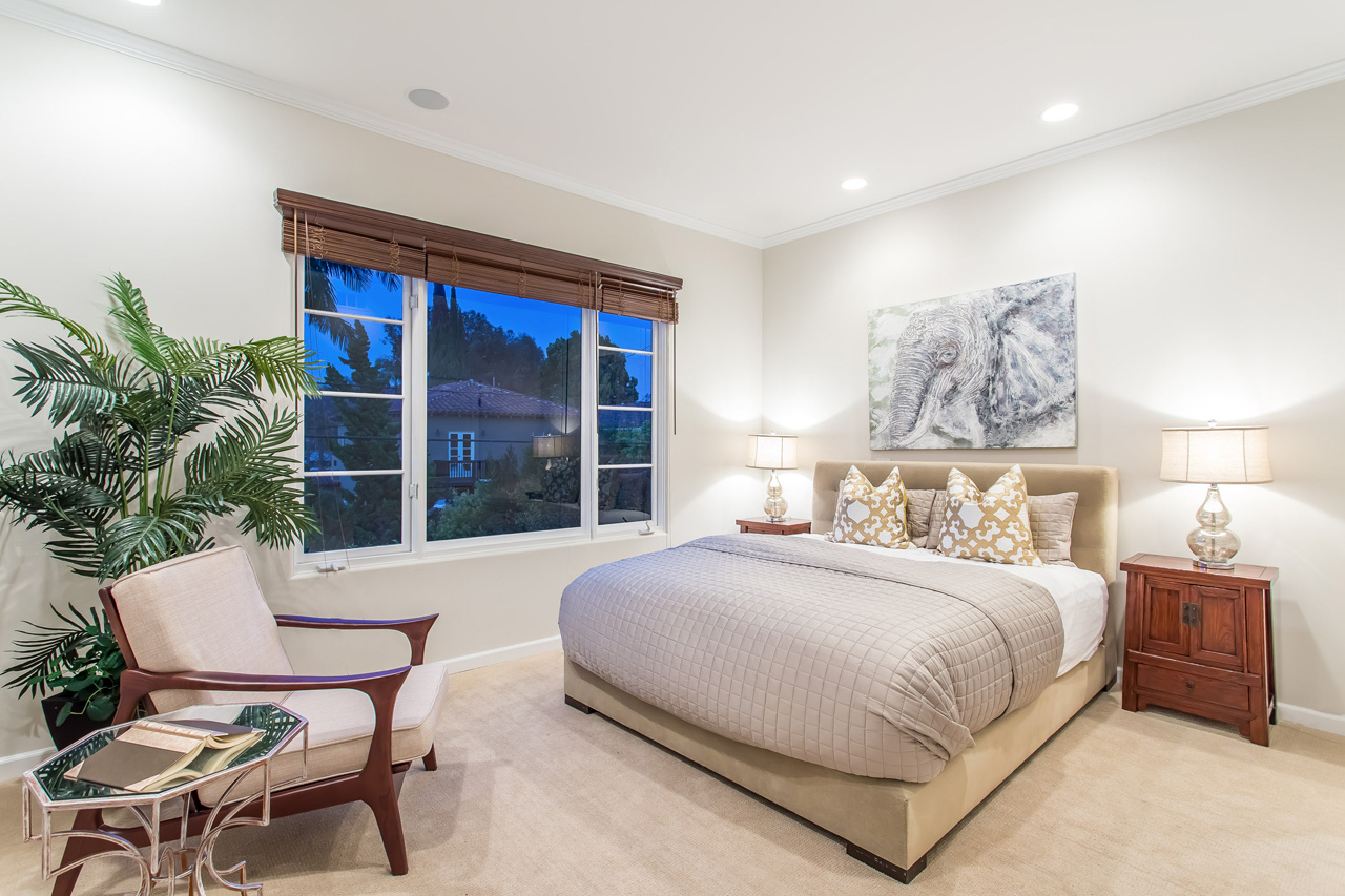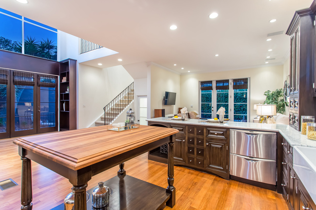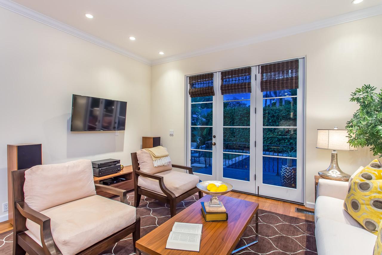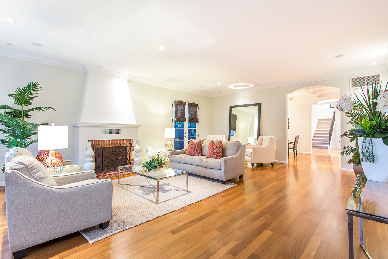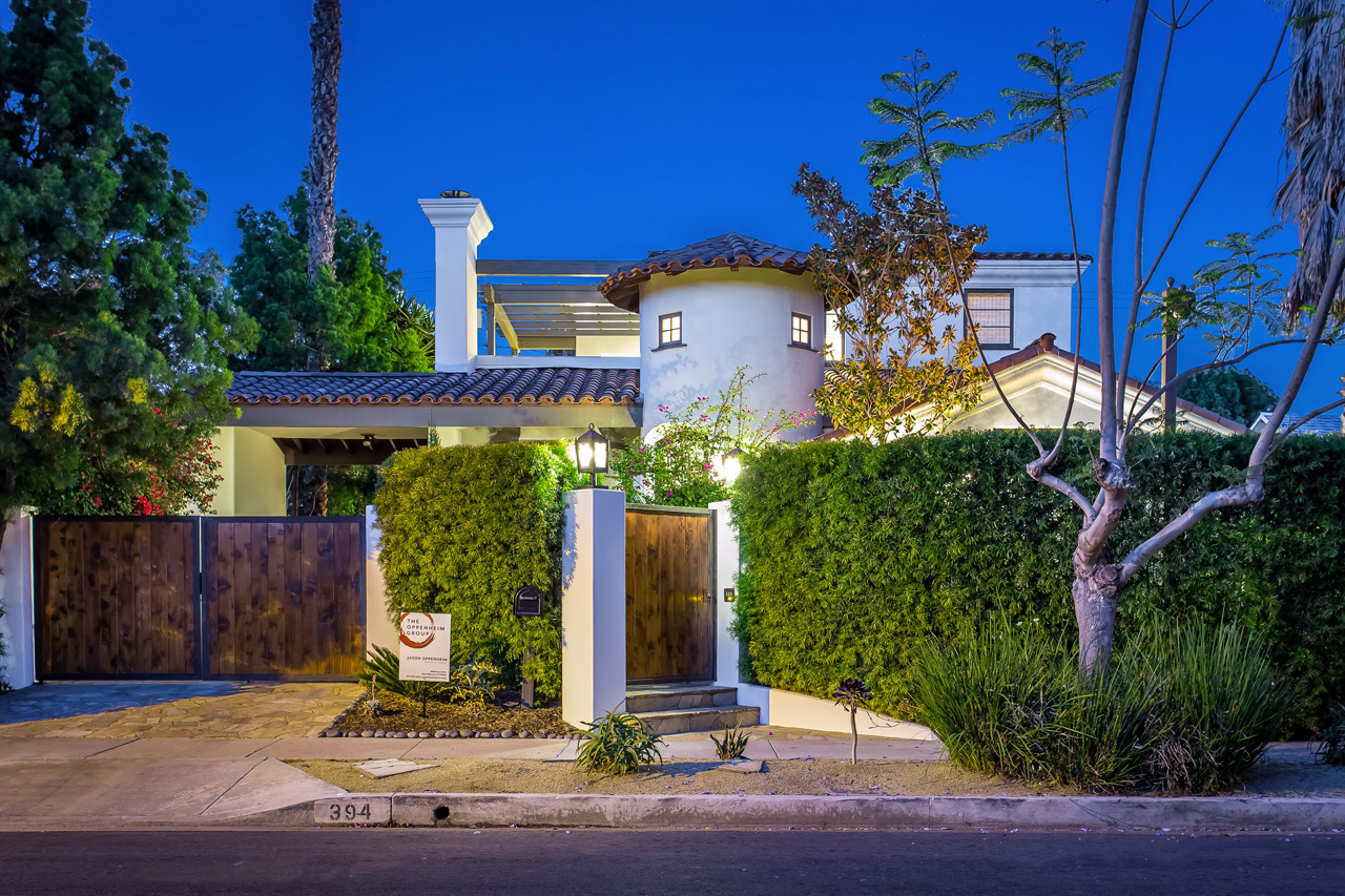 Stunning contemporary Spanish estate located in the heart of prime West Hollywood. Hidden behind mature shrubbery, a welcoming front yard leads to a light and bright home with a thoughtful open floor plan. Handsome hardwood floors, accented coffered ceilings in the dining area bring warmth to a modern home. Gourmet chef's kitchen with rich hardwood cabinetry, center island, and stainless steel appliances that open to a living room with soaring ceilings and windows. Luxurious master suite with french doors to an expansive private balcony, walk-in closet, and spa-like bathroom with jet tub. Spacious upper deck perfect for entertaining. This gated home also features a beautiful backyard with stone swimming pool, separate spa, and cabana, as well as 3-car parking.