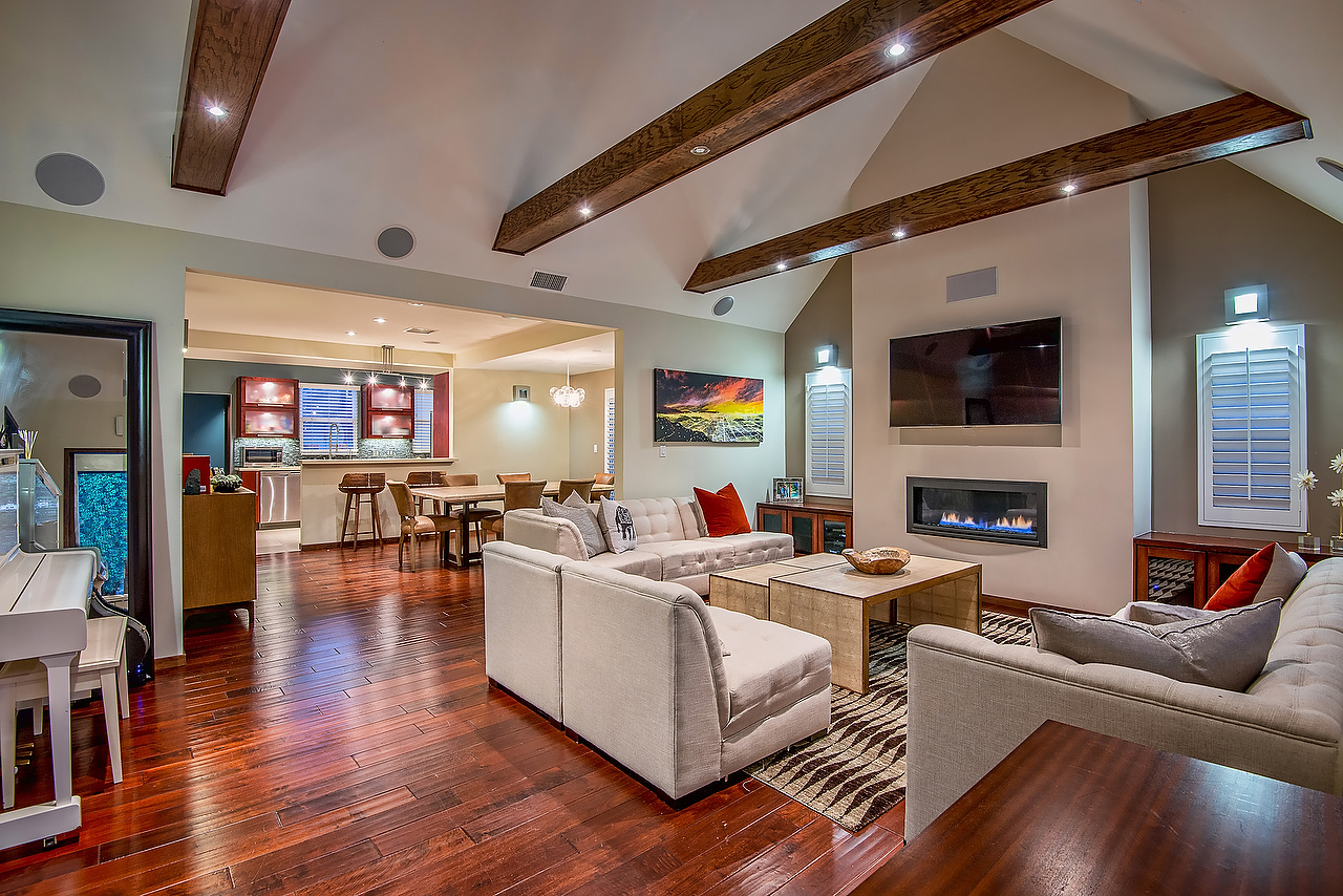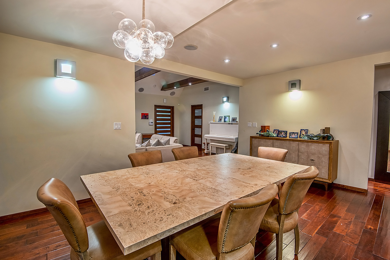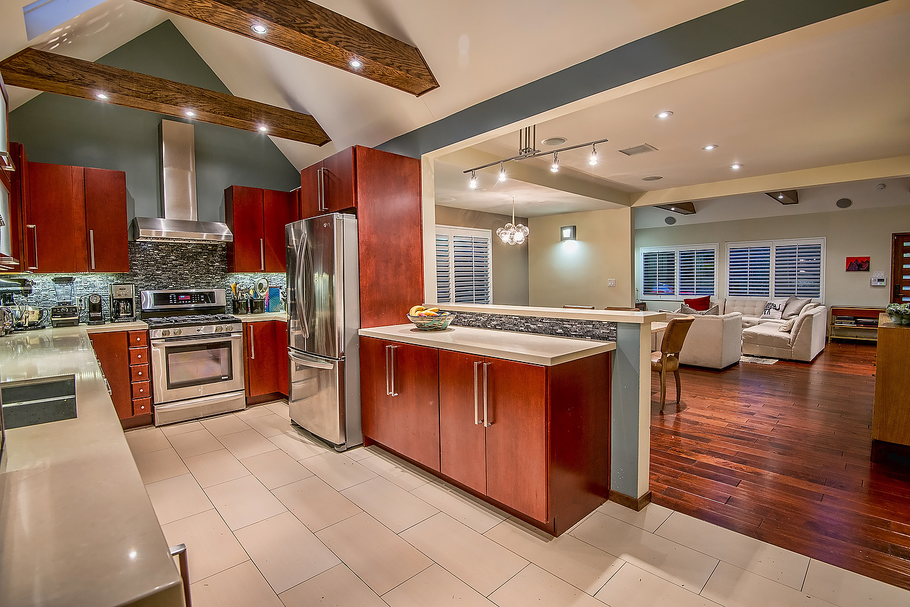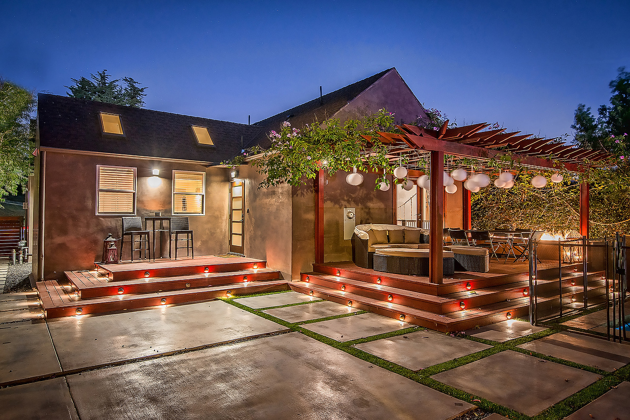 A stunningly remodeled architectural home boasting a single-story open floor plan, high ceilings, with great flow to a modern landscaped backyard with new pool, spa tub, waterfalls, fire pit and built-in barbecue. 3 bedrooms, 3 bathrooms, an open kitchen with solid wood cabinets, top-of-the-line appliances, and a garage converted to a 400 square foot pool-house/maid's room with loft and its own bathroom. With refined finishes throughout, this home is the perfect retreat.