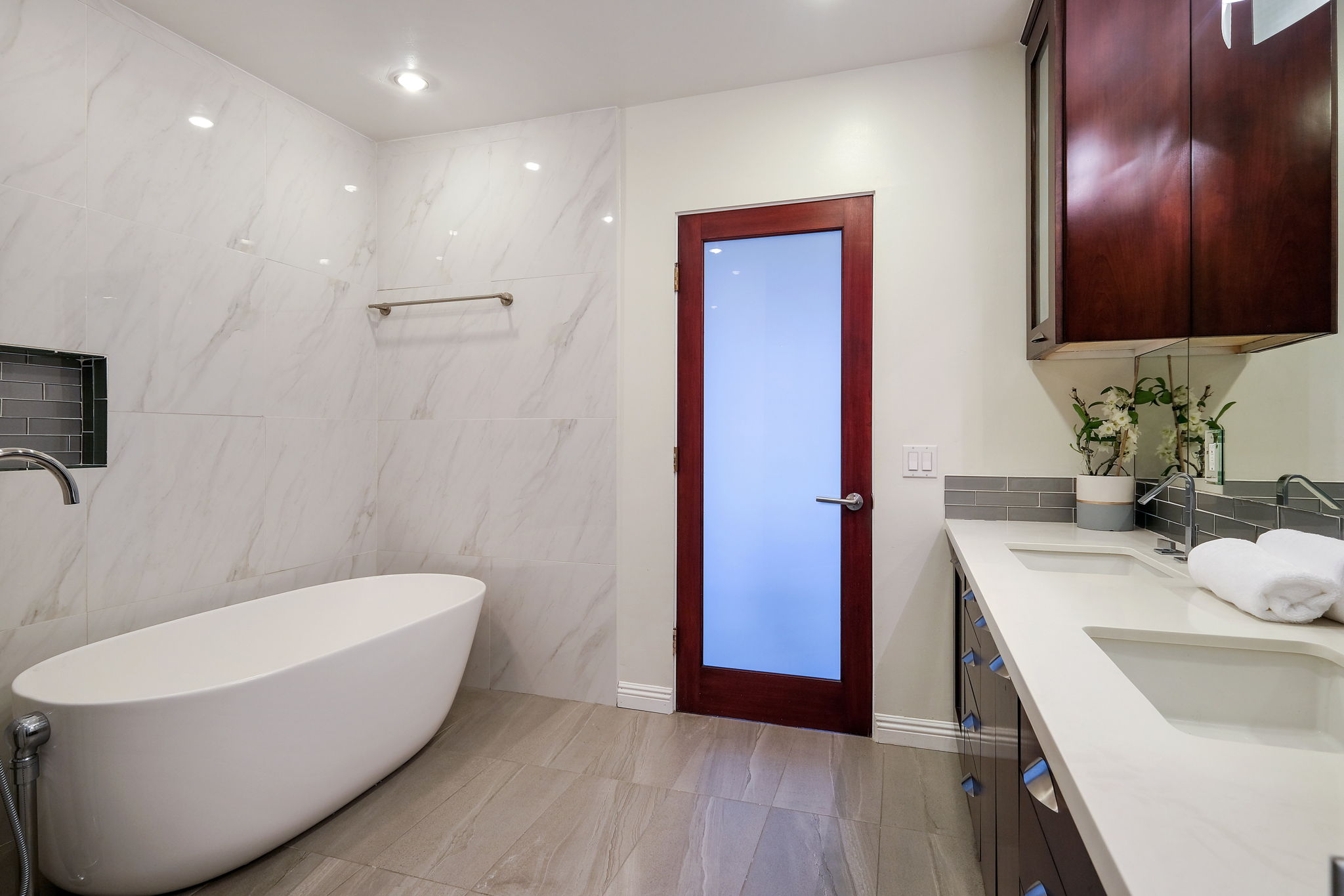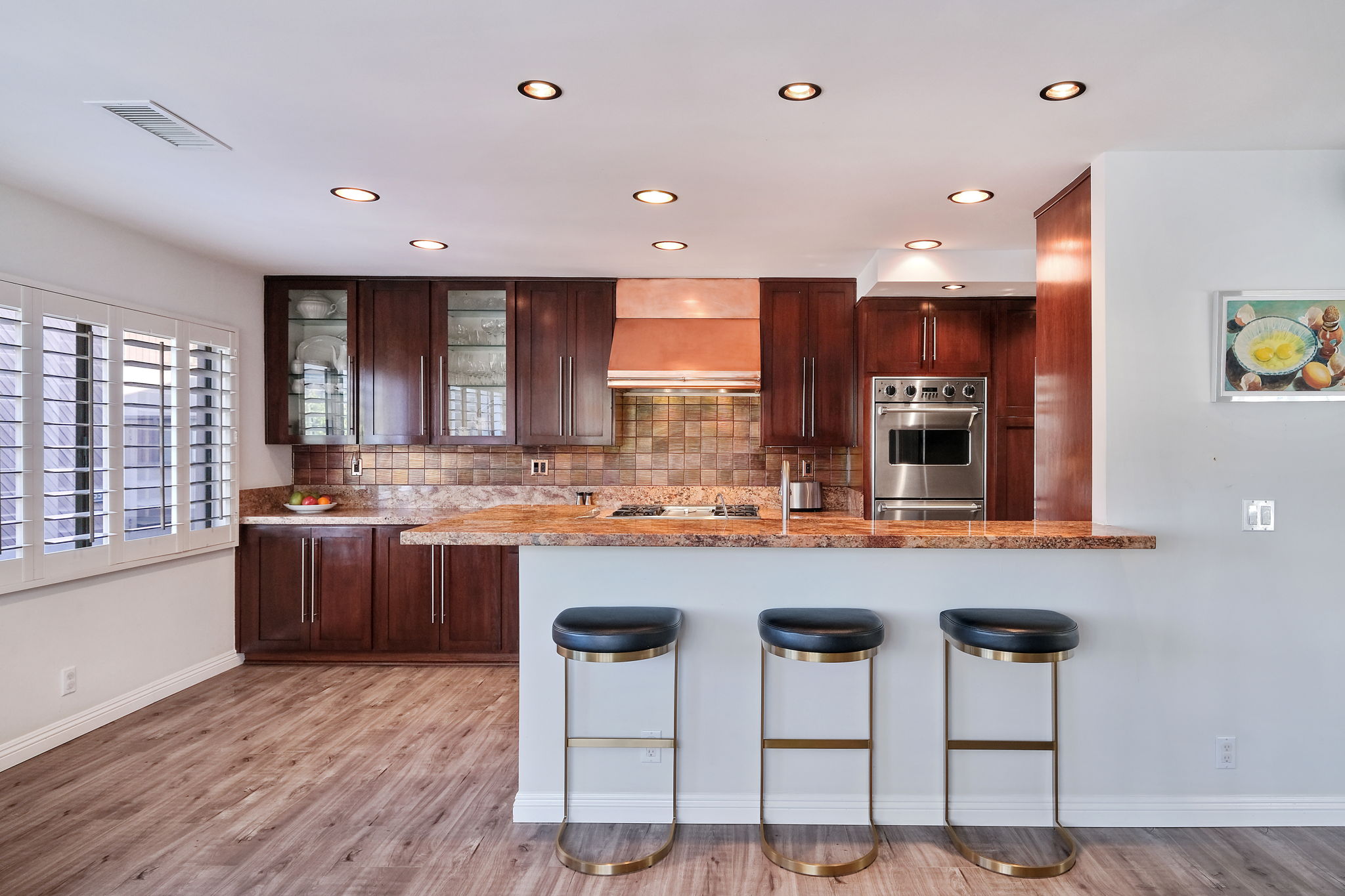 Prized corner unit townhome pristinely remodeled in the Villa Vallarta resort community, adjacent to Venice and Playa Vista - the best of Silicon Beach. Spacious and serene patio perfect for entertaining with landscaped lighting, mature trees for privacy, and built-in BBQ. This unit boasts high ceilings with custom glass front doors and numerous windows, creating an airy environment with abundant natural light. The chef-style kitchen features top-of-the-line Viking appliances, high-end cabinetry, granite countertops, deluxe copper hood, breakfast bar, and a bonus area for additional family/dining or office space. Retreat to the impressive owner's suite with private sundeck, shoji closet doors, and built-in wardrobe, newly constructed upscale en-suite with double vanity, quartz countertops, separate shower, modern spa soaker tub with deluxe fixtures and tiles. Private attached 2-car garage. Gated community with four swimming pools and jacuzzis.