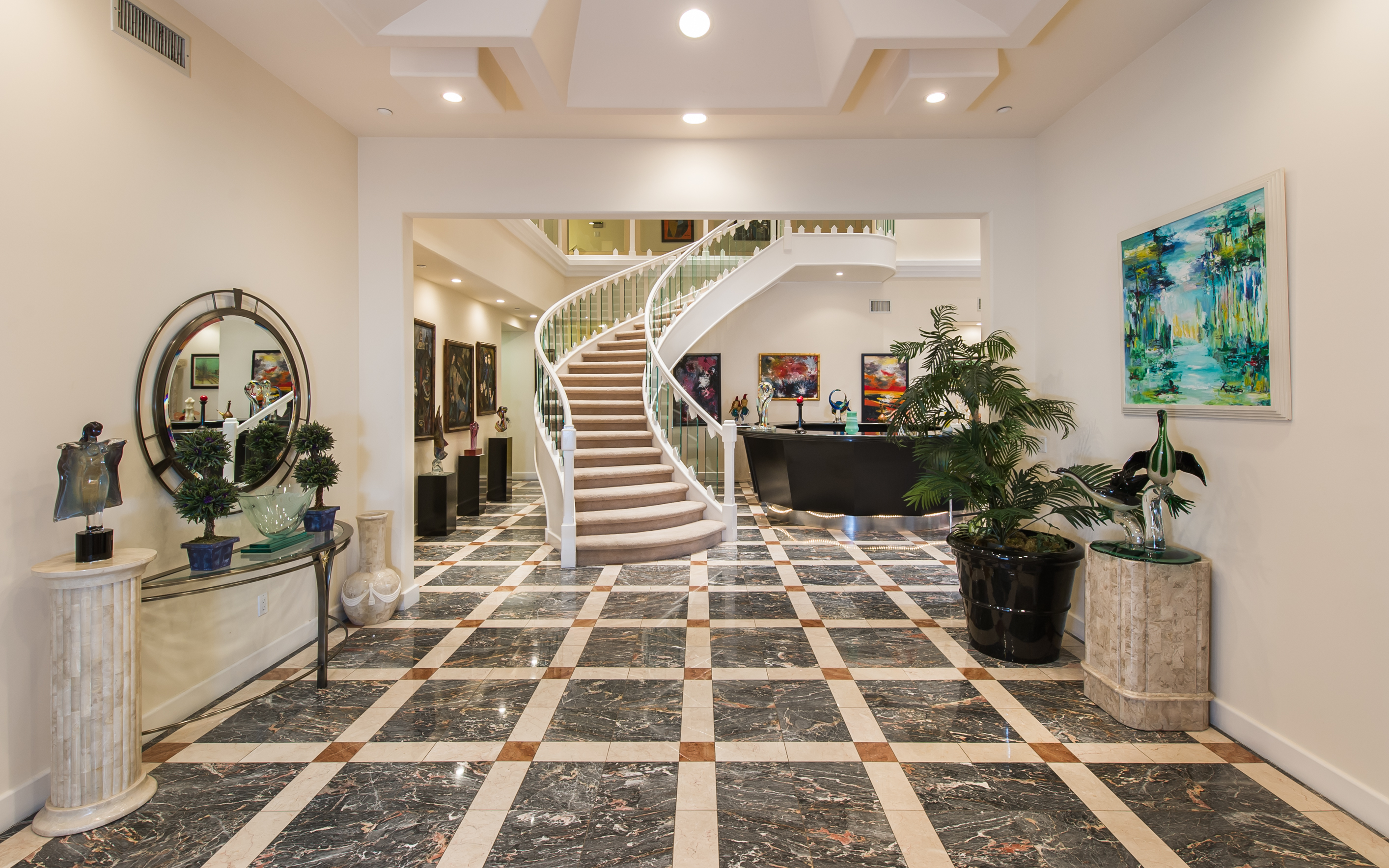 Exquisite Custom Gated Contemporary Estate in prime Encino. Amazing View lot with jetliner views. Over 11,000 sqft of luxury living on ¾ of an acre. 6 luxury en suite bedrooms, 10 bathrooms all with the finest finishes and perfection of design. The grand living room boasts a floating staircase, ceilings soaring over 30+ ft with a wall of windows overlooking the San Fernando Valley. Incredible open floor plan. Sumptuous master suite is a 1500 sqft retreat comprised of a private sitting room with a spacious balcony with panoramic views, 2 fireplaces, spa like bath with a dry & wet sauna, gym and more. Chef's kitchen features imported birds-eye maple cabinetry, 2 islands, a double Sub-Zero and oversized breakfast room. Library/office, finished basement, upstairs bonus room. 3 car garage + parking for 10+ cars.
