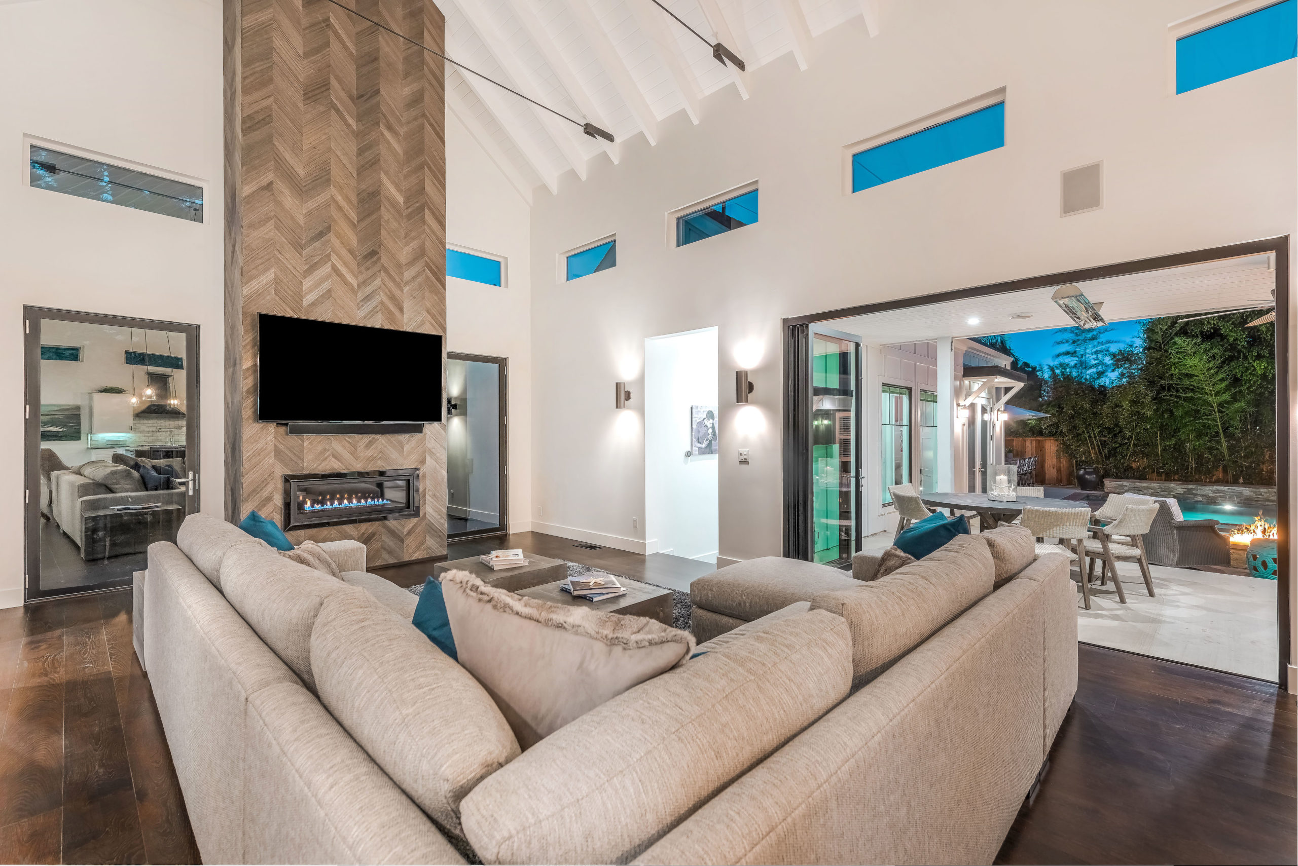 An award-winning designed contemporary farmhouse that exudes warmth and charm. Located in the sought after neighborhood of Eastside Costa Mesa, the home features an open floor plan with dramatic 2-story high vaulted ceilings that expand into the main living area. LaCantina bi-fold doors throughout the home create the perfect indoor/outdoor California living, opening the amazing pool/spa and spacious covered patio (ideal for "Al Fresco"dining and gatherings) via walls of disappearing glass. The light-filled interior accommodates 4 beds and 3.5 baths in total, with a large home office that can be used as a separate Casita. The luxurious owner’s suite is replete with exposed wood-beam ceilings and an ensuite bath with gorgeous free-standing tub and separate walk-in steam shower. Fully automated smart home with Control 4 system, individual room controls and surround-sound throughout the interior/exterior, and electric car charging station in the oversized garage complete this dream home.
