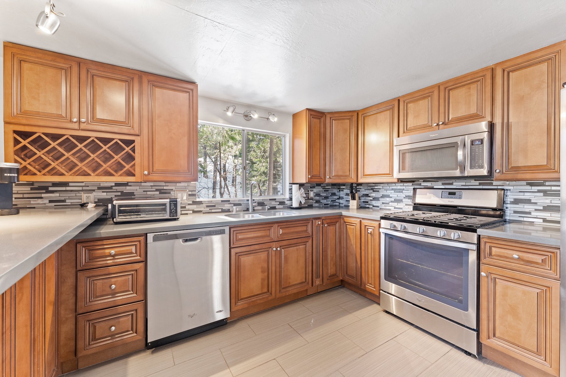 Outside, the deck offers the perfect spot for enjoying morning coffee or hosting summer barbecues amidst the beauty of the forest. Take advantage of the nearby hiking trails, pristine lake, and charming shops and restaurants that make Lake Arrowhead a coveted destination for year-round living or weekend getaways.
