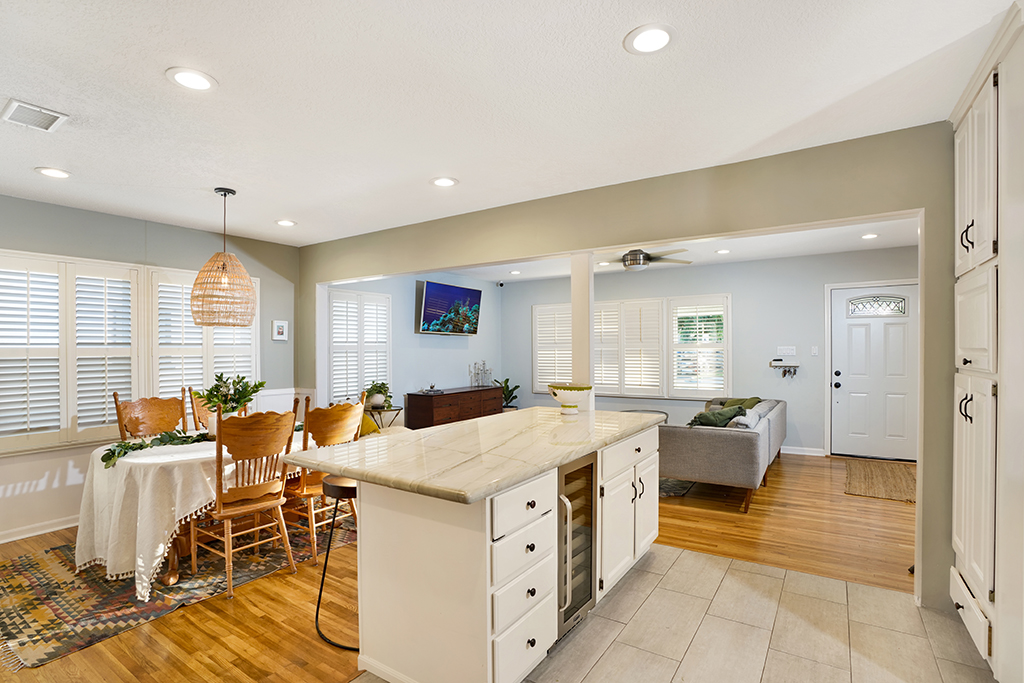 This newly remodeled single-story family home boasts 3 generously sized bedrooms and a large family bath. The refinished original wood flooring throughout sets the perfect tone upon entering the open concept floor plan with living, dining, and kitchen areas. The stunning kitchen upgrades include quartz countertops and a large island, stainless steel appliances, and a gorgeous farmhouse-style porcelain sink. The pristine landscaping lends for ample outdoor entertaining, with a private back garden enjoying both expansive amounts of lush grass and a covered patio with access to the 2-car garage. This property truly is a wonderful home.