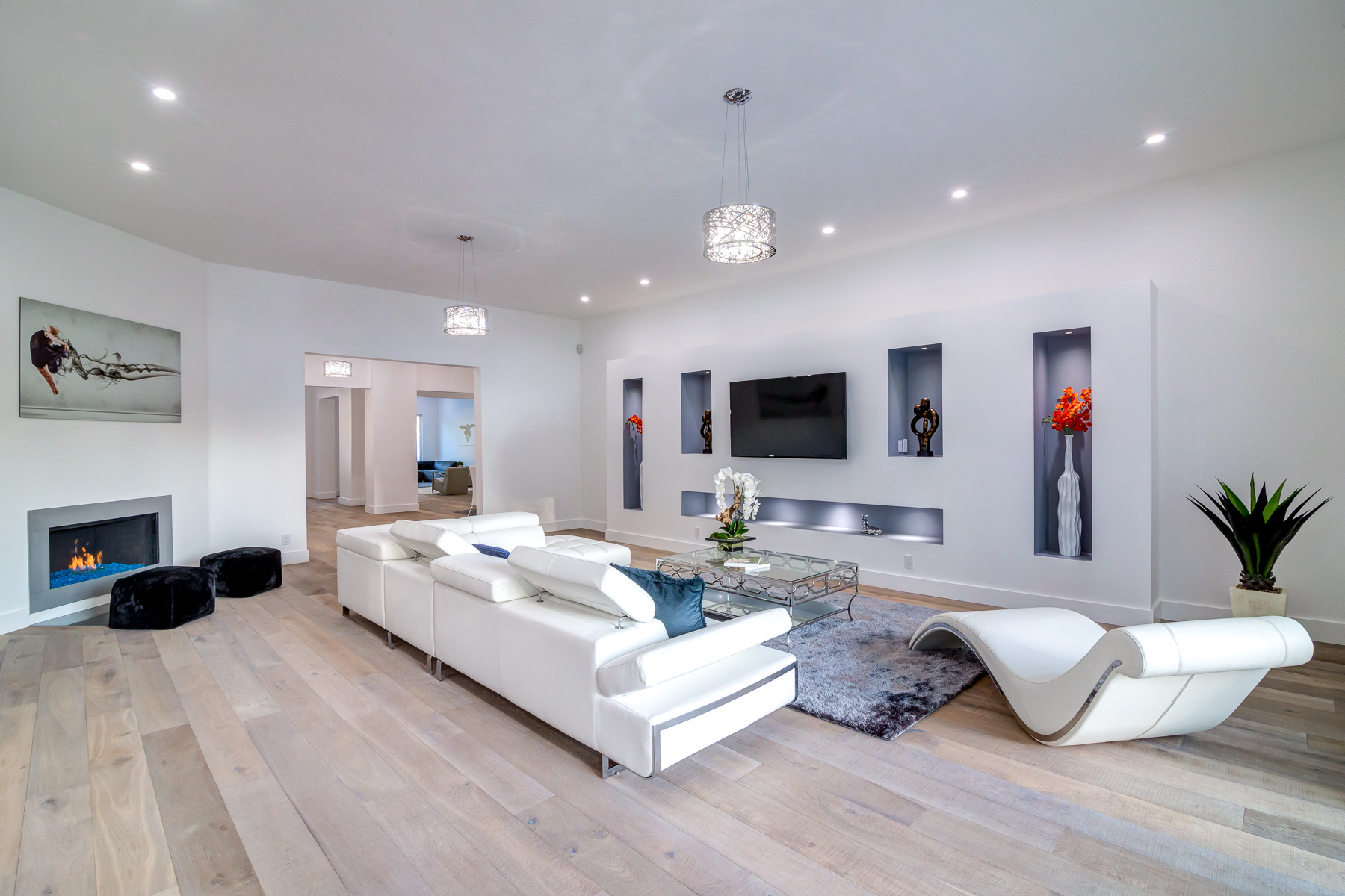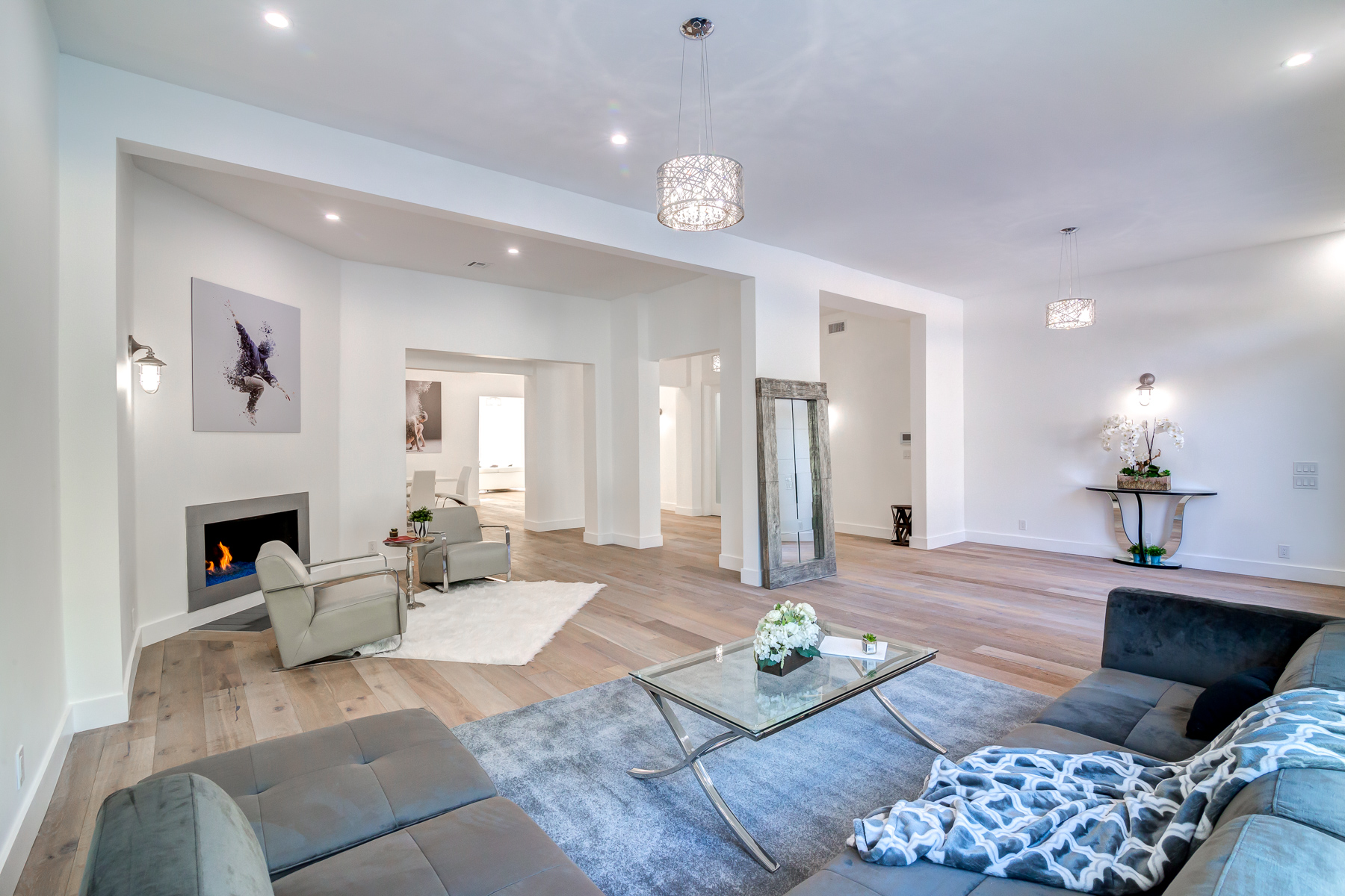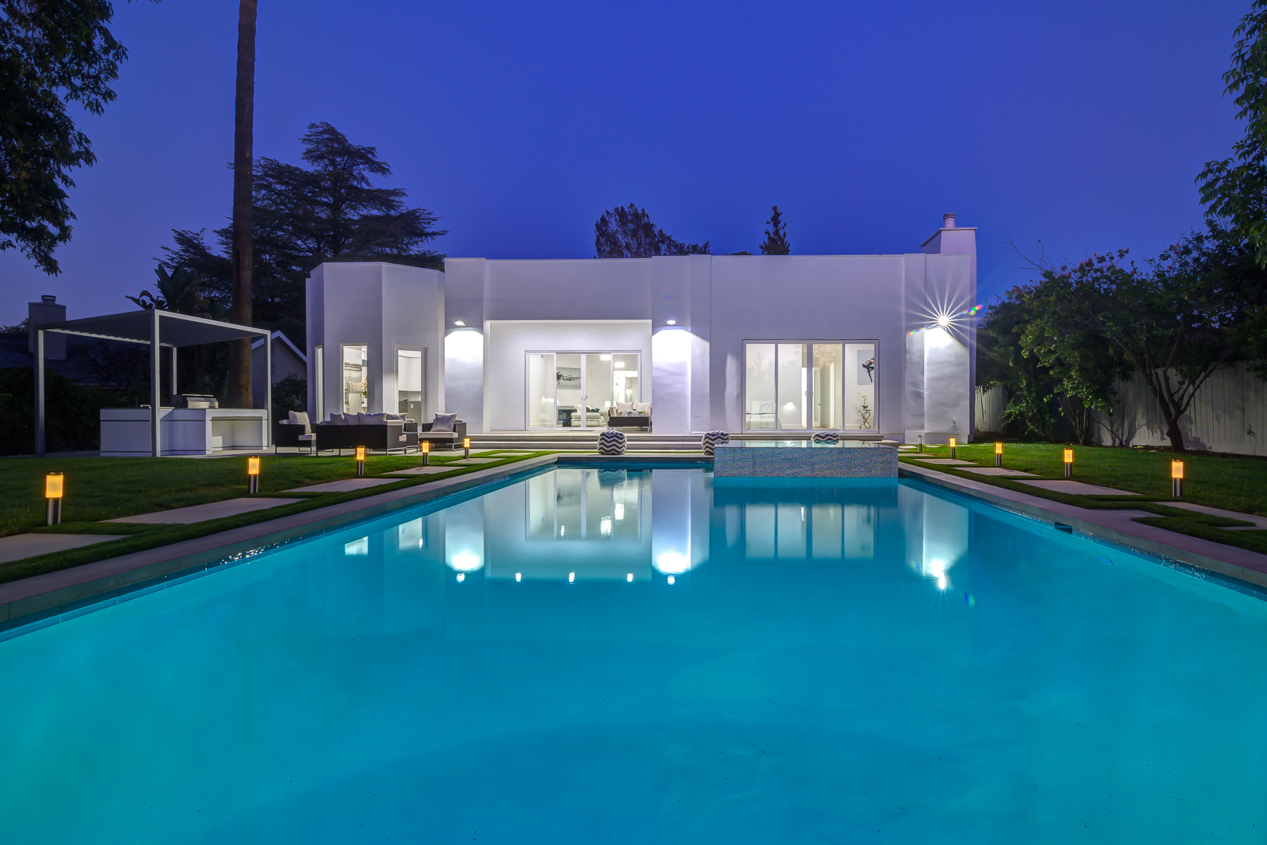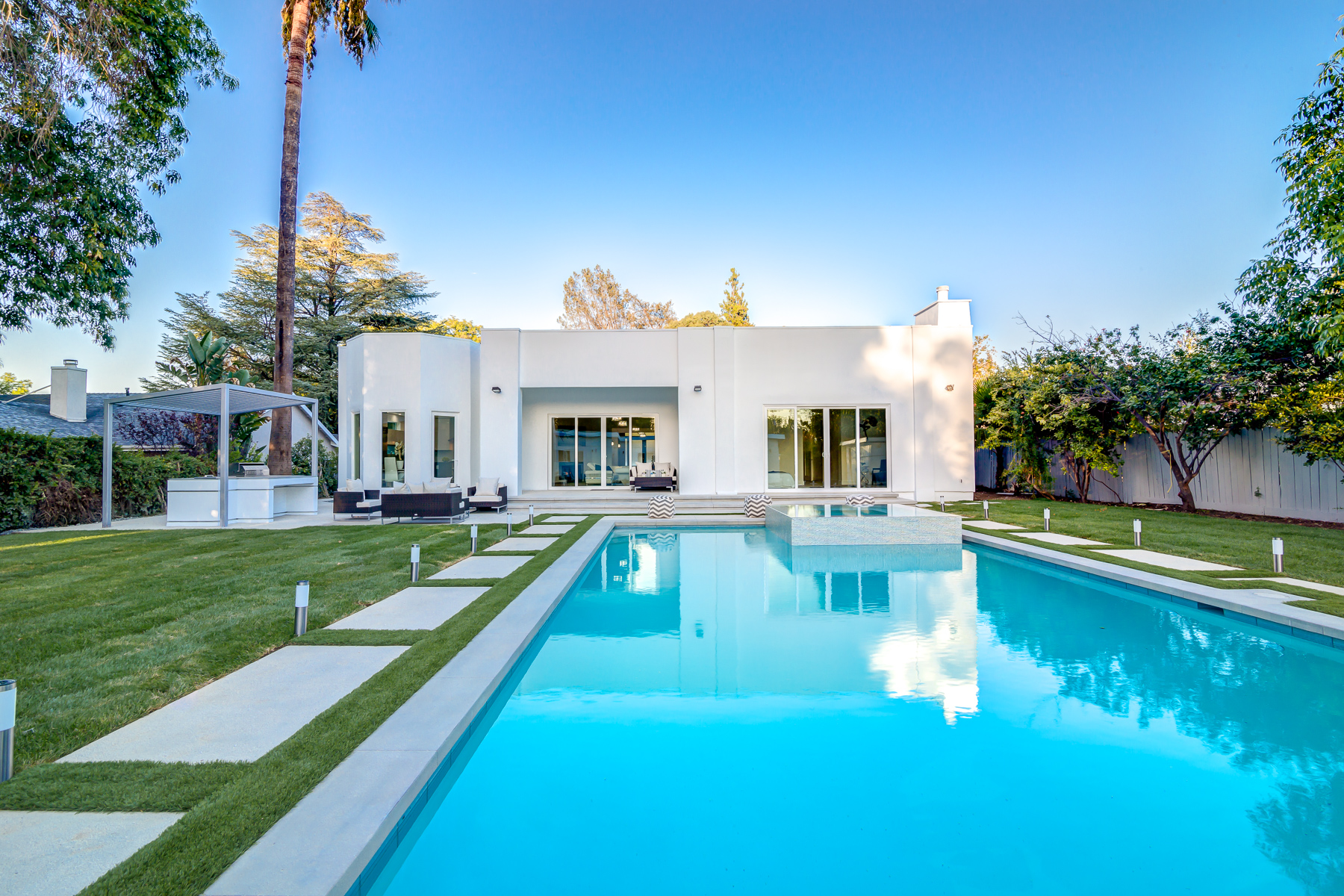 Located on one of the most sought-after streets in the valley, sits this privately-gated contemporary estate on an almost half acre lot. Upon entering this single level estate you’re greeted with 11ft ceilings, wood-plank floors throughout and a large upscale living room. The stunning modern kitchen features Thermador appliances, sleek cabinetry, a 9ft waterfall island, and a breakfast nook. A butler’s pantry includes a second sink and dishwasher along with a wine refrigerator. All bedrooms are uniquely designed and generously sized, each with an ensuite bathroom. The owner's suite features a resort-style bathroom, fireplace, large walk-in closet, and sliding doors flowing directly to the impressive outdoor space. The lush and expansive private backyard is an entertainer’s dream, featuring a pool with an infinity-edge spa, an outdoor grilling area, and a custom 900 sq. ft. pool house replete with a bedroom, bathroom, gym and living area. Plenty of parking space with a 2-car garage and a massive driveway for up to 10 cars. Your dream home awaits!