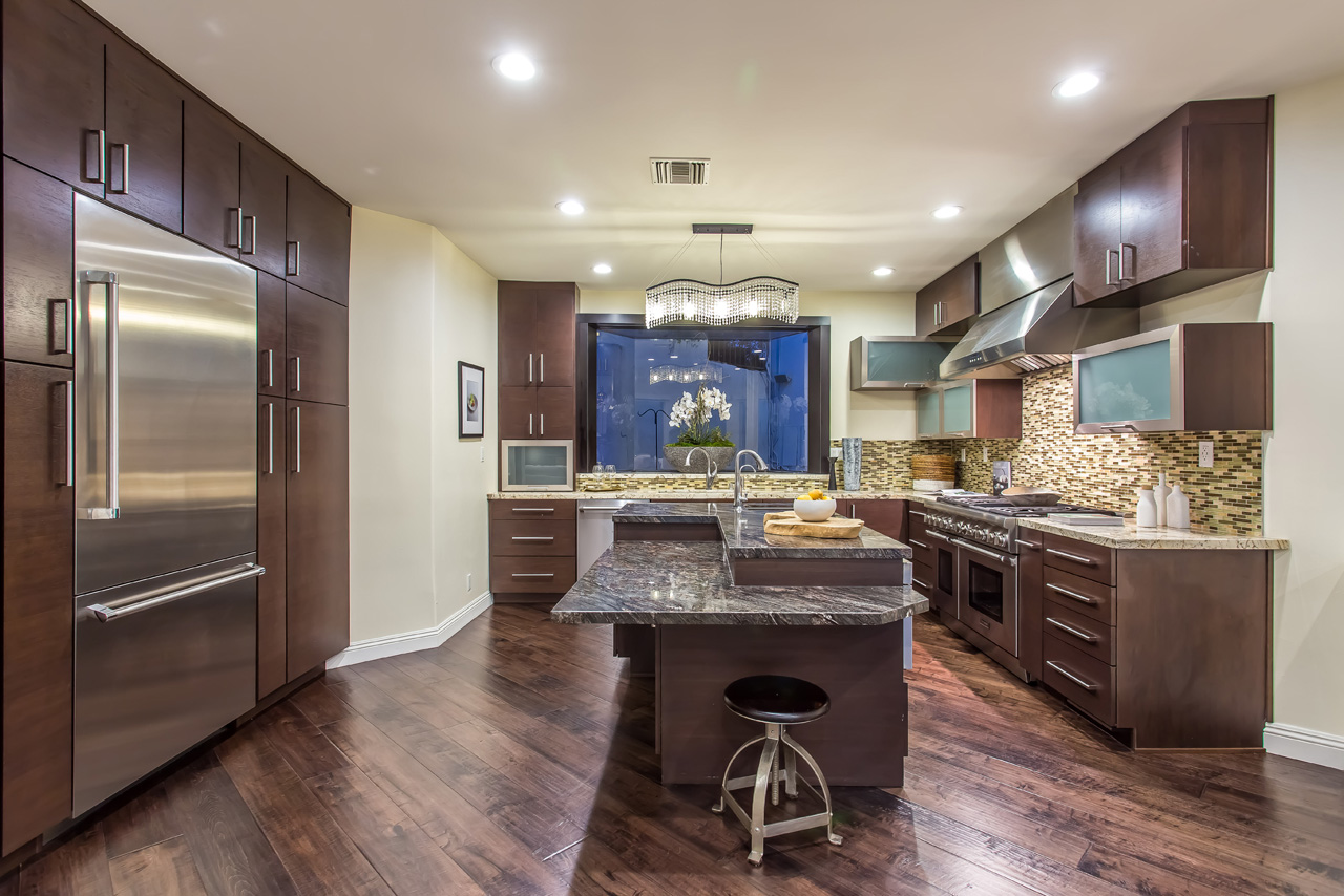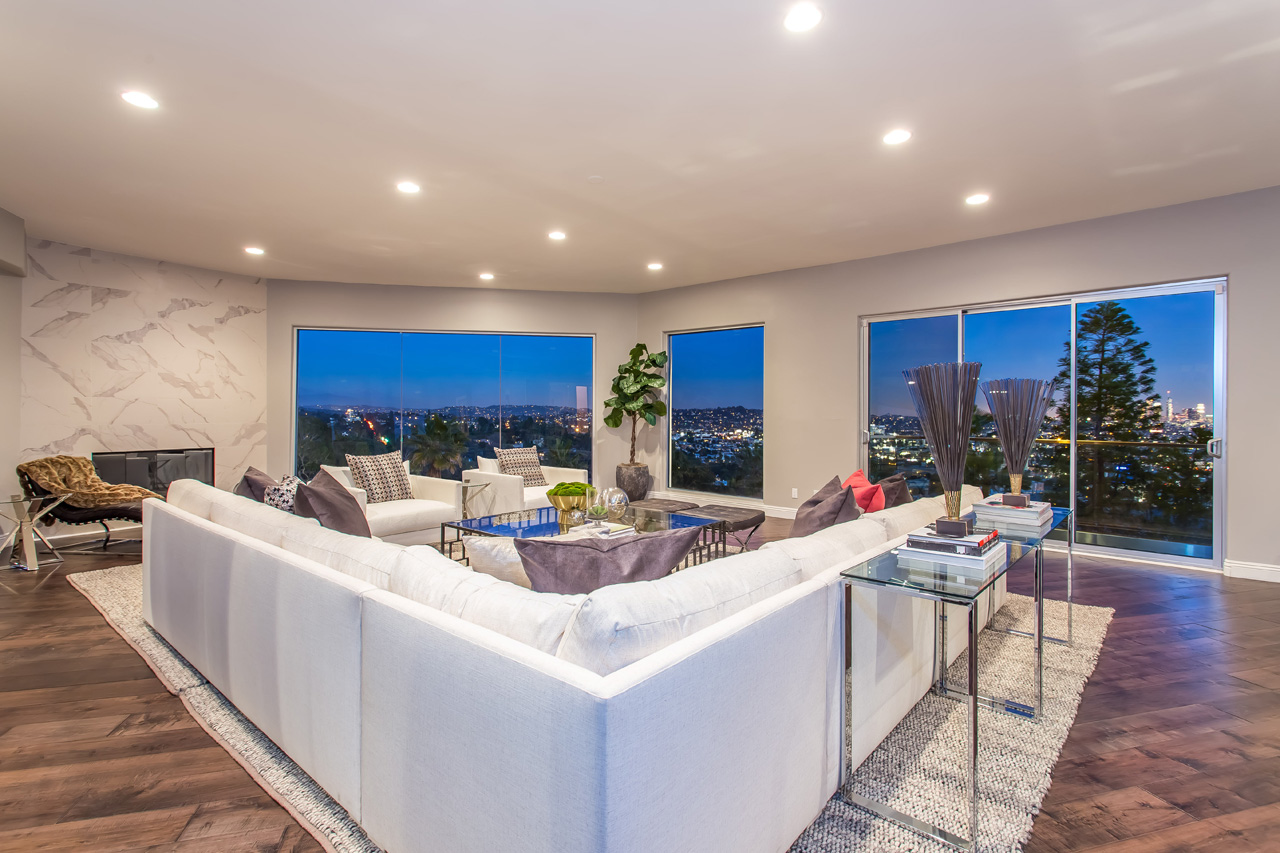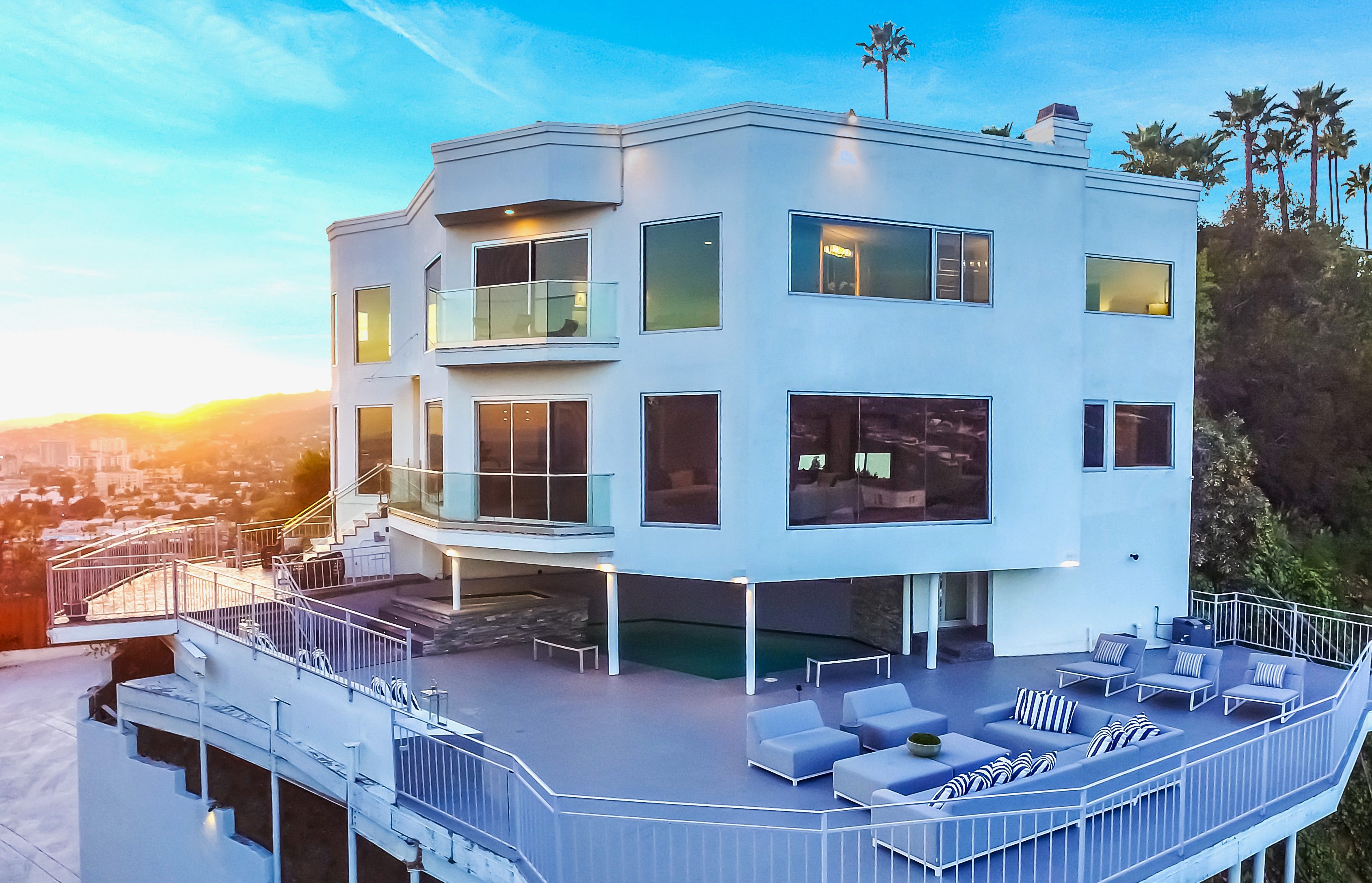 Nestled in “The Oaks” of Los Feliz, this contemporary gated estate offers the rare combination of space, style, and expansive city views from the Hollywood Hills to the Pacific Ocean. Updated with many features for entertainment, it delivers 5 bedrooms, 6 baths, and over 5,500 sq. ft. of open floor plan with multiple level decks and balconies, all replete with new home-automation. The patio provides a much desired luxurious retreat, with a grotto-style pool, hot tub, BBQ grill, and a koi pond. The modern Chef’s kitchen comes equipped with Italian and Brazilian granite countertops, onyx glass backsplash, and a double oven. Dual master suites offer spa-like bathrooms, with steam showers, jet bathtubs, touch faucets, and backlit onyx. Captivating views, a long privately gated driveway, and an expansive living space make this a rare and unique find.