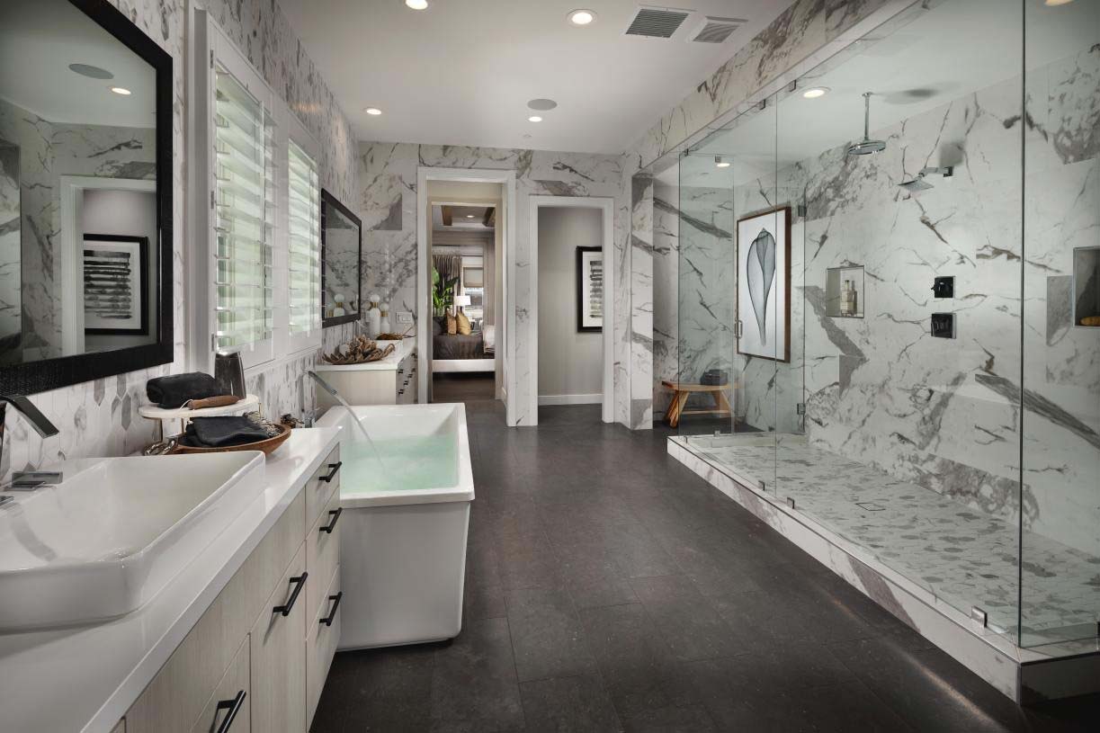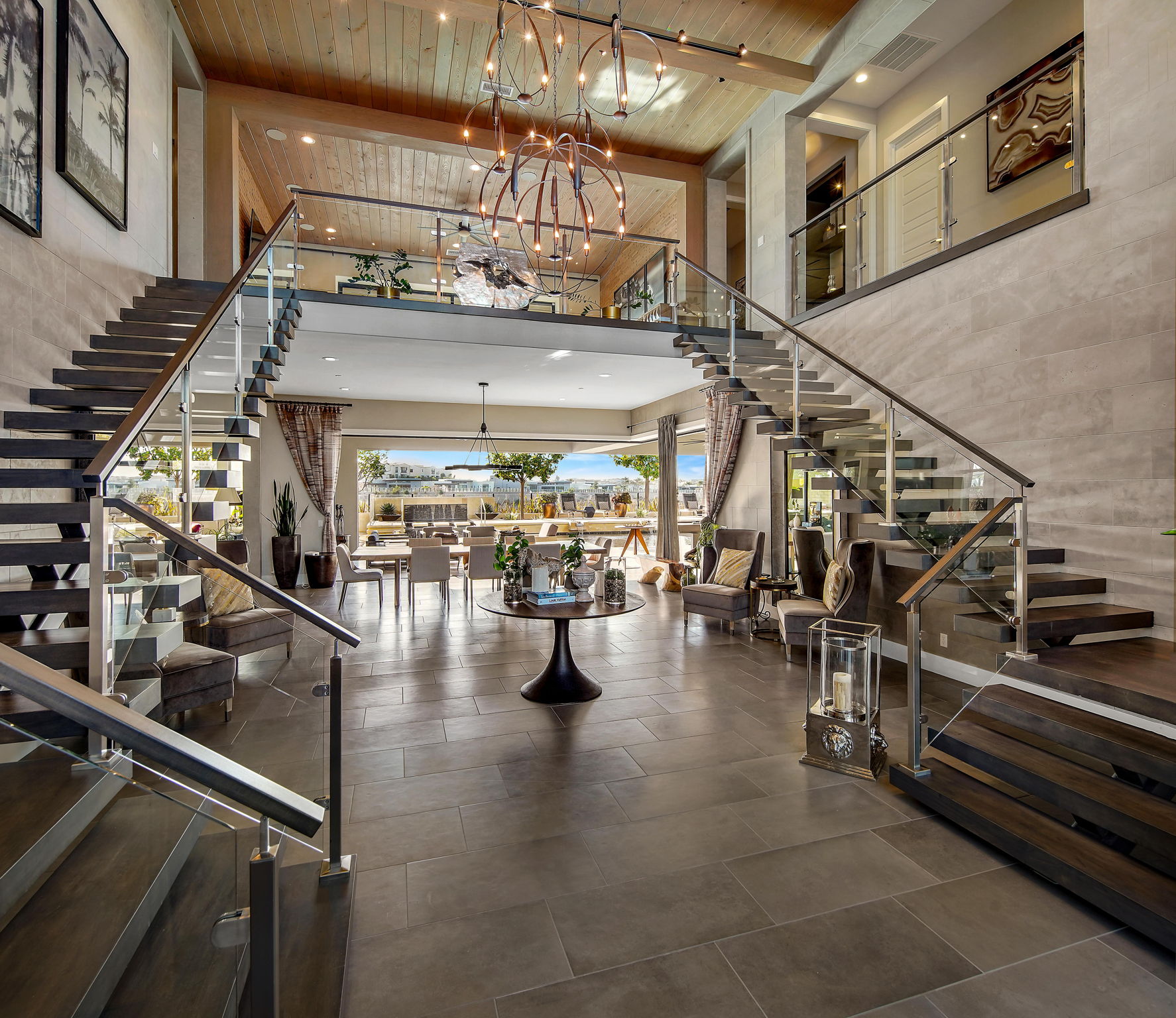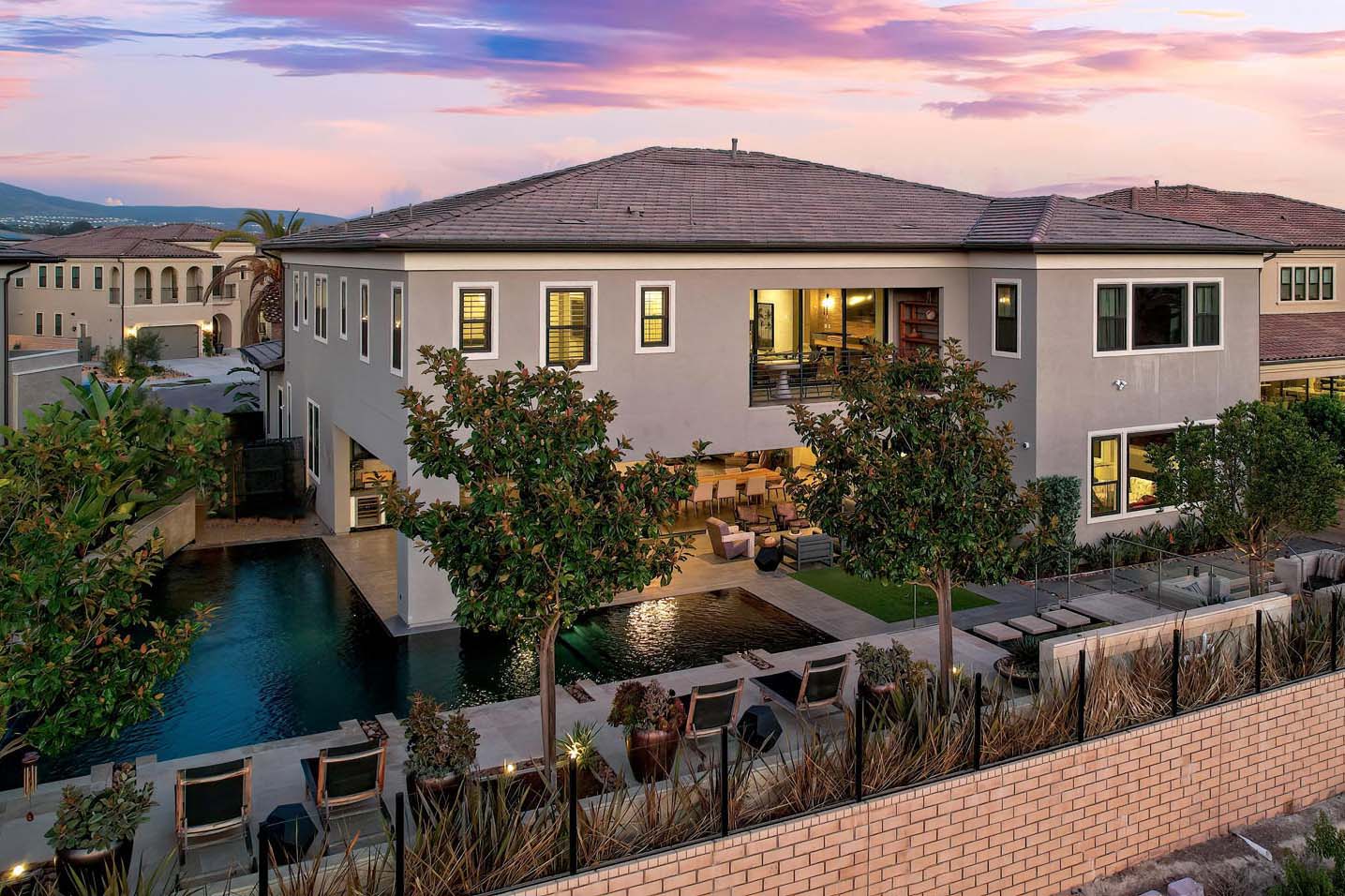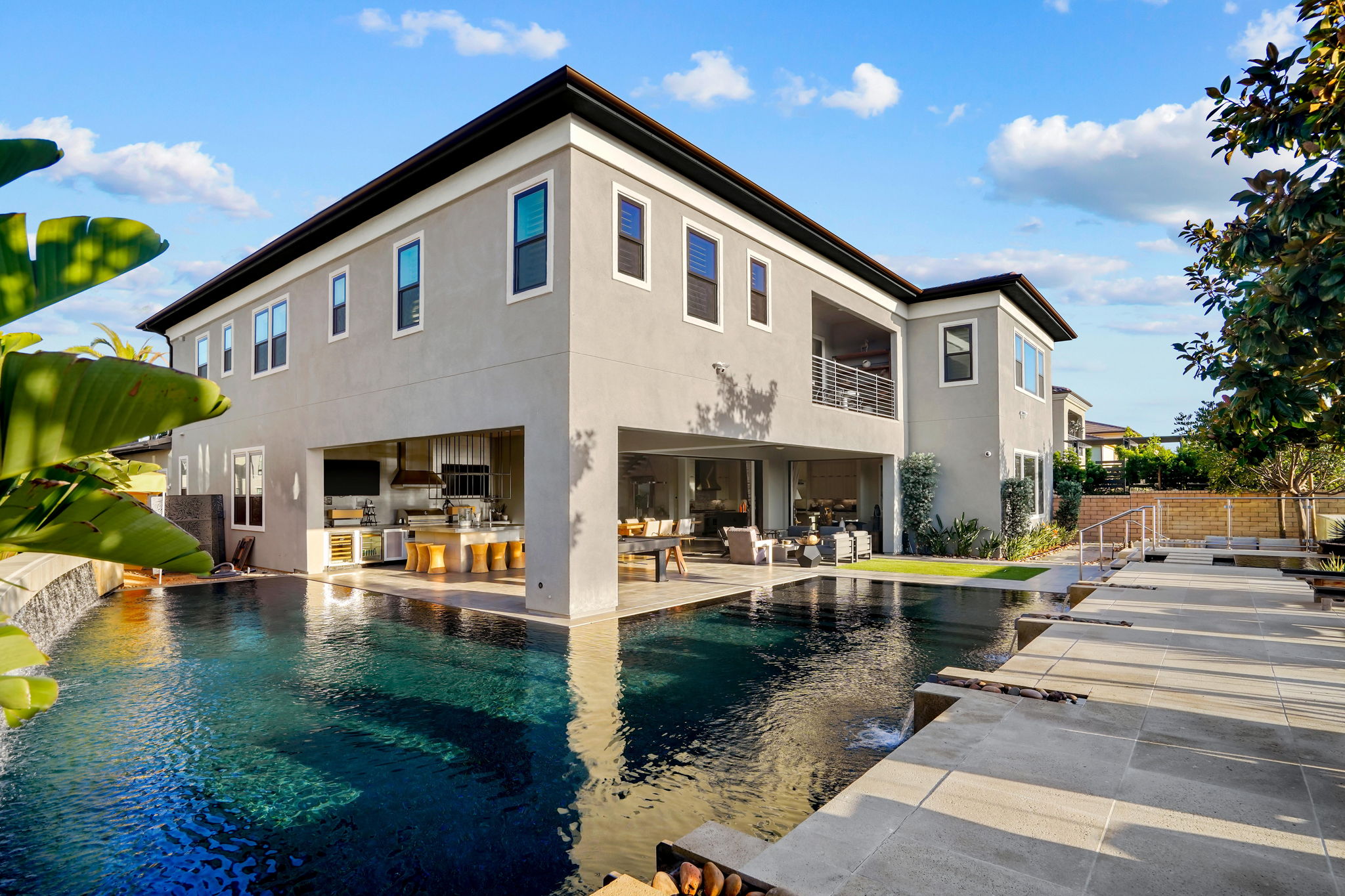 The most impressive property built in Pacific Highlands Ranch. An exceptional offering that combines the ultimate in sleek contemporary finishes and exterior amenities, all located within the prestigious 24-hour gated community of Palomar. Recently built in 2018, the home impresses with a soaring foyer with dual staircases framed by incredible canyon views and stunning exposed wood-beamed ceilings. Continue through the open living and dining areas, with 90-degree pocketing floor-to-ceiling doors allowing a plethora of natural light and an unparalleled transition of indoor/outdoor living. The one-of-a-kind entertainer's yard boasts a massive wrap-around infinity-edge resort-style pool and spa, waterfall feature, sunken outdoor conversation pit with fireplace, grassy yard, and a covered patio with outdoor kitchen with multiple lounging areas. The chef's kitchen is replete with built-in breakfast bar seating, top-of-the-line Wolf appliances, and separate prep-kitchen. Upstairs the large primary retreat is the pinnacle of privacy and luxury with a separate living area, stunning wood-beamed ceilings, and a spa-like ensuite bathroom with double vanity sinks, oversized shower, and custom walk-in closet. 4 additional guest bedrooms with ensuite baths and ample space, all of which are centered by a generous bonus-room and covered view deck. Experience the utmost in refined living within a convenient location, top-rated schools, unmatched quality and design, and high-efficiency upgrades including solar panels. 4-car garage with additional driveway parking.