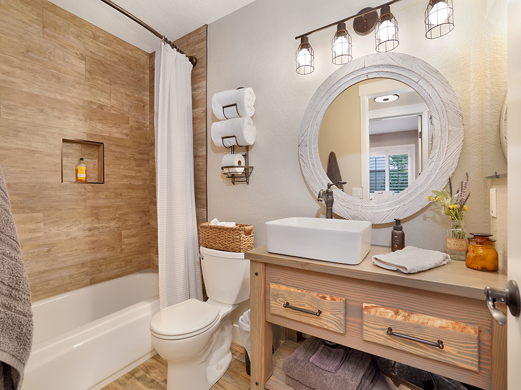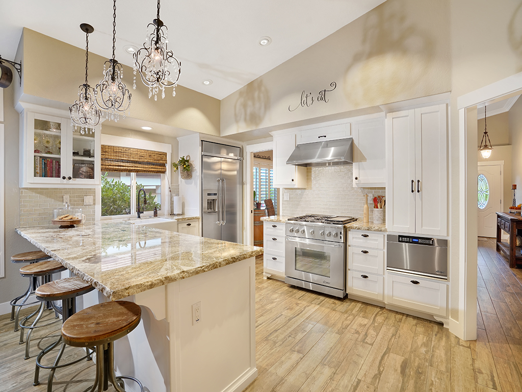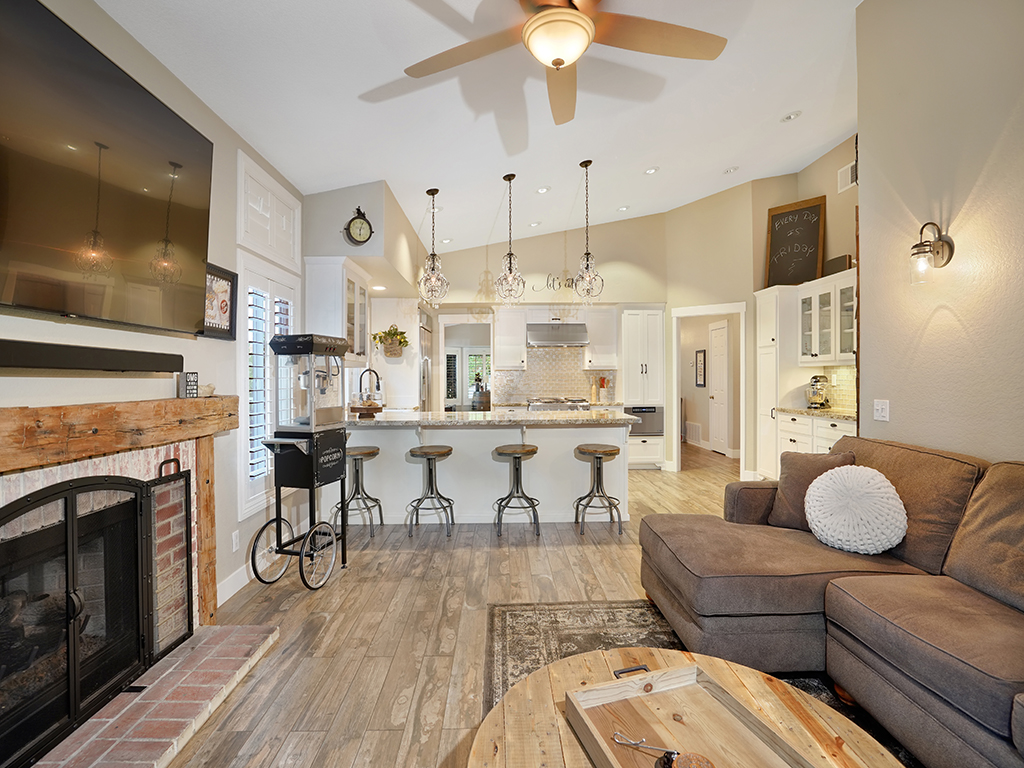 This beautiful 3bed 2bath single story family home oozes curb appeal with it's immaculate landscaping and exposed brick exterior. Upon entering this well appointed property, you are pleasantly greeted into the formal entry room with high ceilings and wood grain tile which flows throughout. The upgraded kitchen boasts commercial grade appliances, ceramic farmhouse sink and granite countertops. The open concept layout of the kitchen/family room leads out through sliding glass doors to the generously sized private back garden which comes complete with covered patio, lawn and jacuzzi. The impressive owners suite in this stunning home enjoys it's own en-suite bathroom with double vanity, soaking tub and mirrored closet. Two further bedrooms are found to enjoy an abundance of natural light and both boast ceiling fans and barn door features, a family bathroom and separate laundry room round out this wonderful property and is one not to be missed!