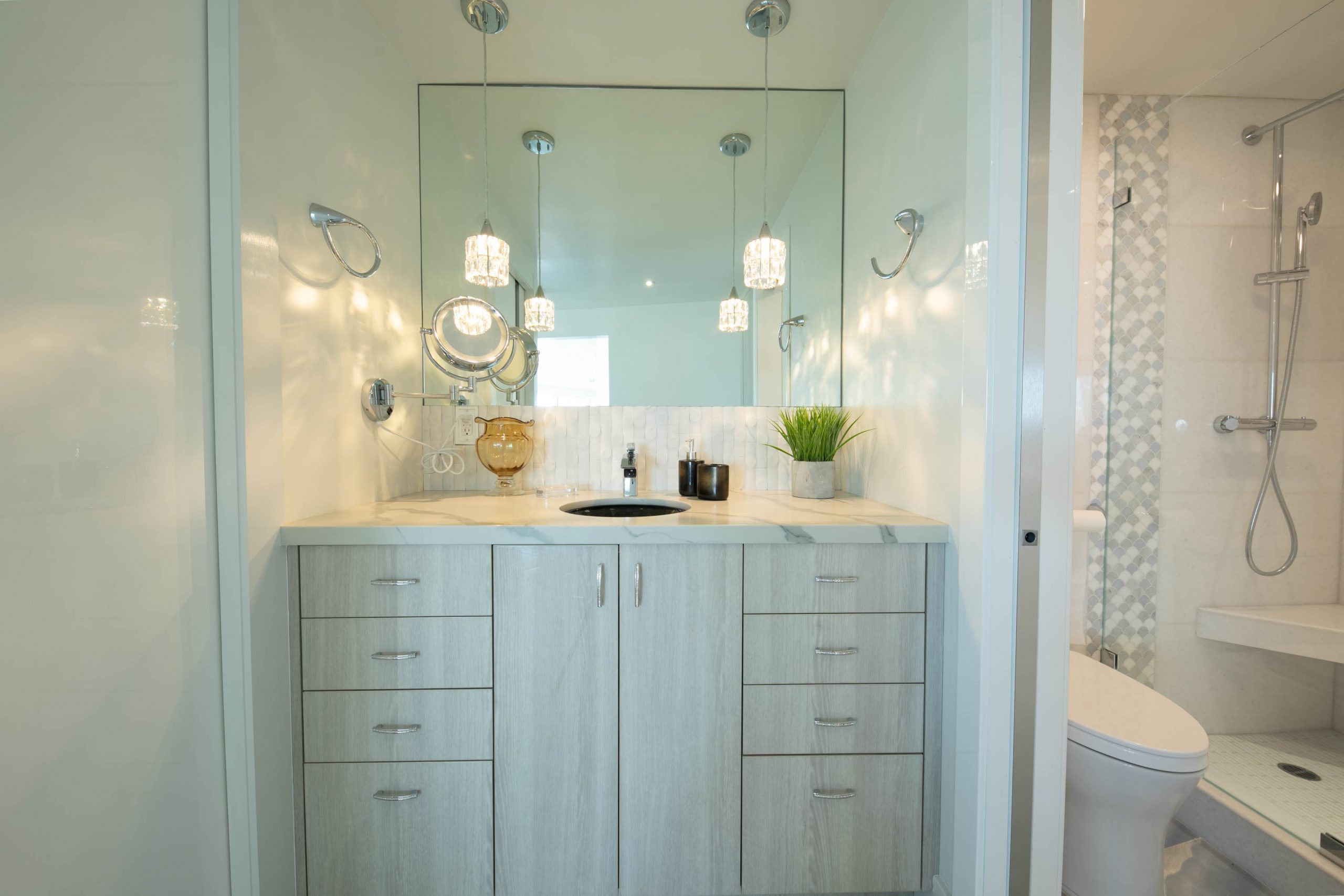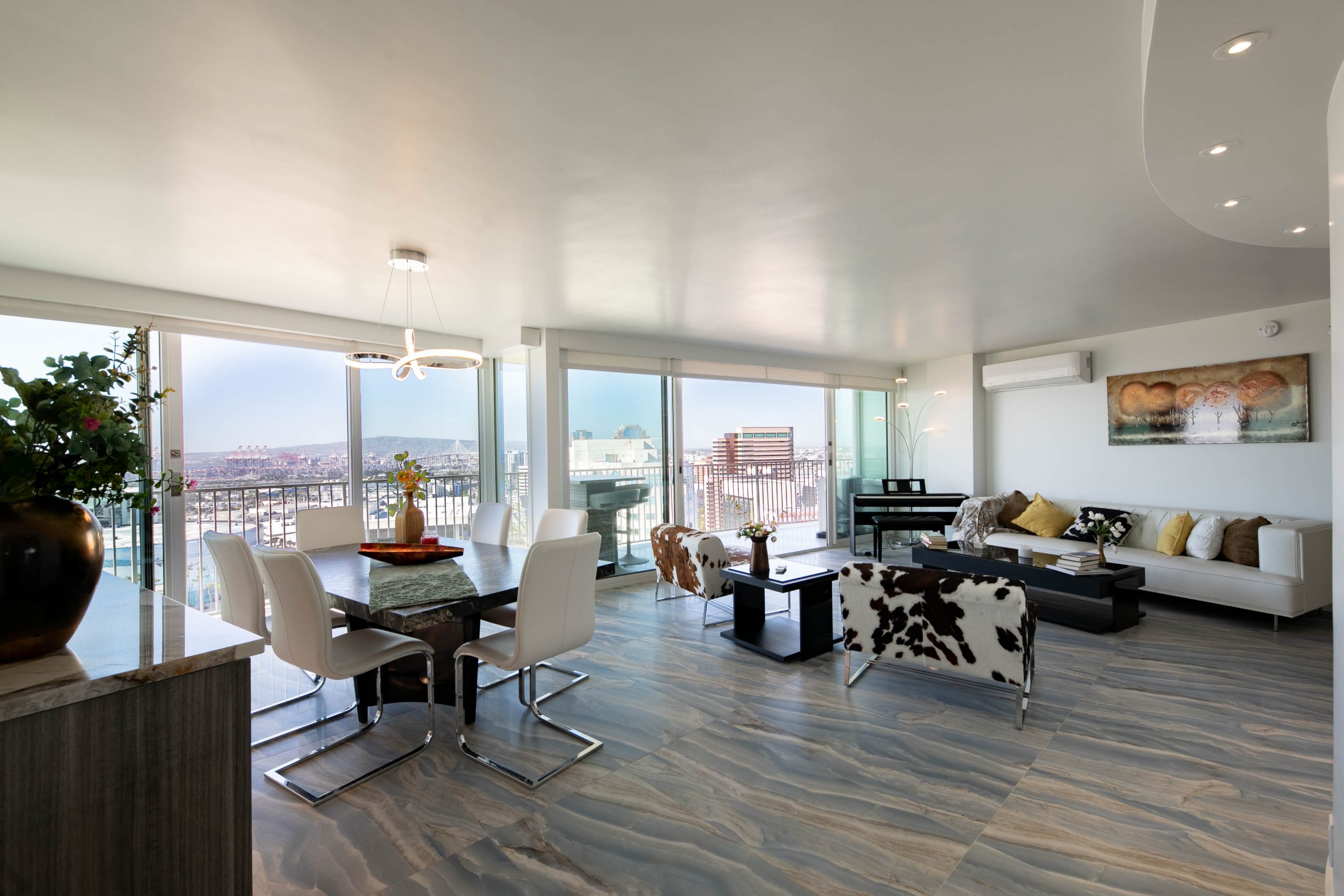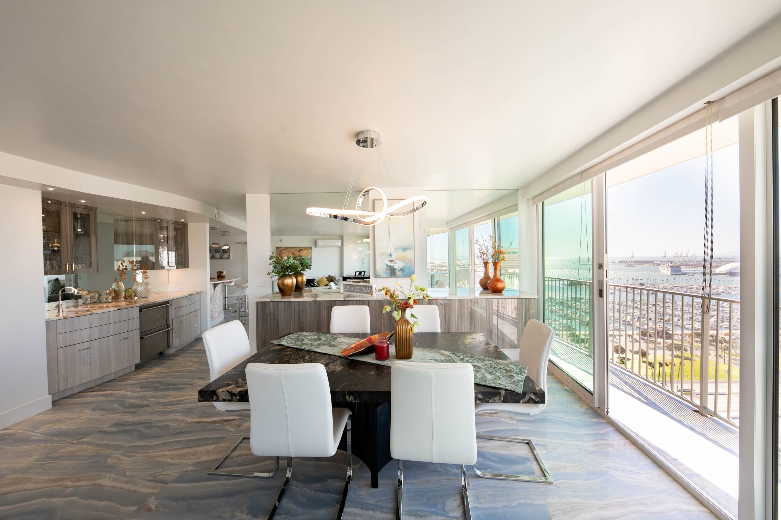 Ocean view! You’ll love the balcony with expansive views of Catalina Island, The Queen Mary, Downtown Long Beach, Aquarium of the Pacific, and of course the ocean views. Exclusive Ocean-Front high rise on the 30th floor of the iconic International Towers. The two combined condos were meticulously designed to unfold with grace, unveiling the living room adjacent to the luxurious dining room & wet bar and in addition the upgraded elegant kitchen seamlessly opens to the family room. All these rooms and the three bedrooms feature floor to ceiling windows or sliding doors that lead to the balcony to enjoy the panoramic ocean views. As gentle breezes caress your skin, relish in the joy of this tranquil wrap around balcony with your favorite drink. Two ensuite bedrooms and the third can be a bedroom or office. This home offers an inside private laundry room with 4 parking spots underground and two storage areas. Upgraded in 2020, with the finest materials imported from around the world. The Internal Towers has a guard 24/7, community pool, gym, club house and lobby.