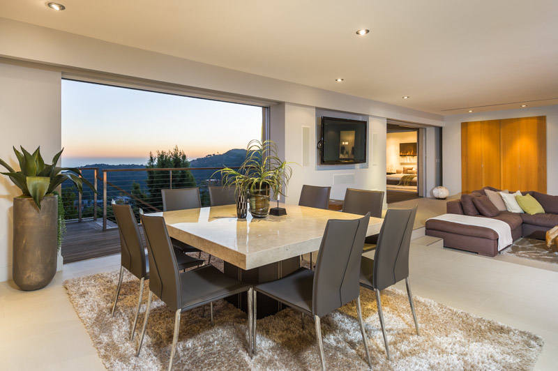 Boasting views from the Hollywood sign to the Ocean, this perfectly crafted contemporary offers the pinnacle of aesthetic refinement. A private oasis, this five bedroom estate has every accoutrement and luxurious master suite tames even the most discerning buyer as city views pierce through glass walls, and a tremendous private deck, indoor/outdoor bathroom, bountiful closet space, and a push-button fireplace exude style and sophistication.