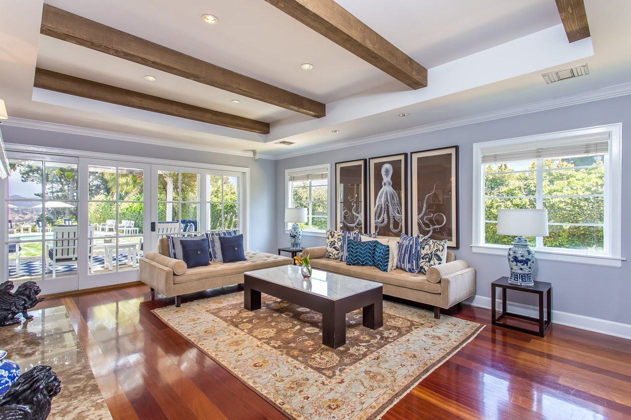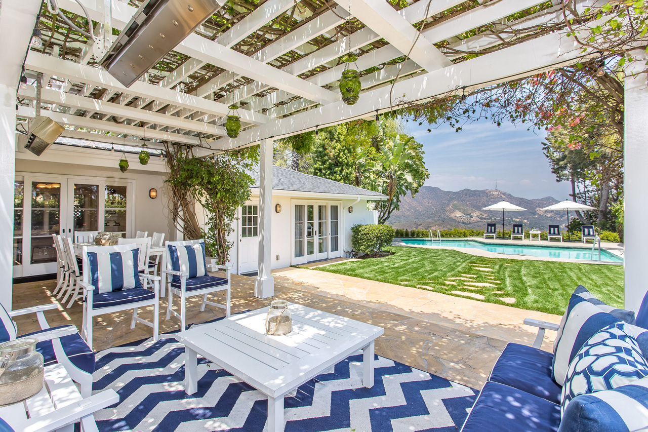 Gated and private Outpost Estate with panoramic views to the Hollywood Sign and Griffith Observatory, located on one of the finest cul-de-sac streets in the Hollywood Hills. This single story designer home boasts beautifully beamed high ceilings, plentiful natural light throughout, and sliding French doors opening to an expansive backyard with a pool and veranda for the signature California indoor/outdoor lifestyle. A plethora of amenities including a large and open chef's kitchen, built-in crown moldings and cabinetry, office space, and mature and meticulous landscaping. Truly a masterful estate for the most discerning buyer.