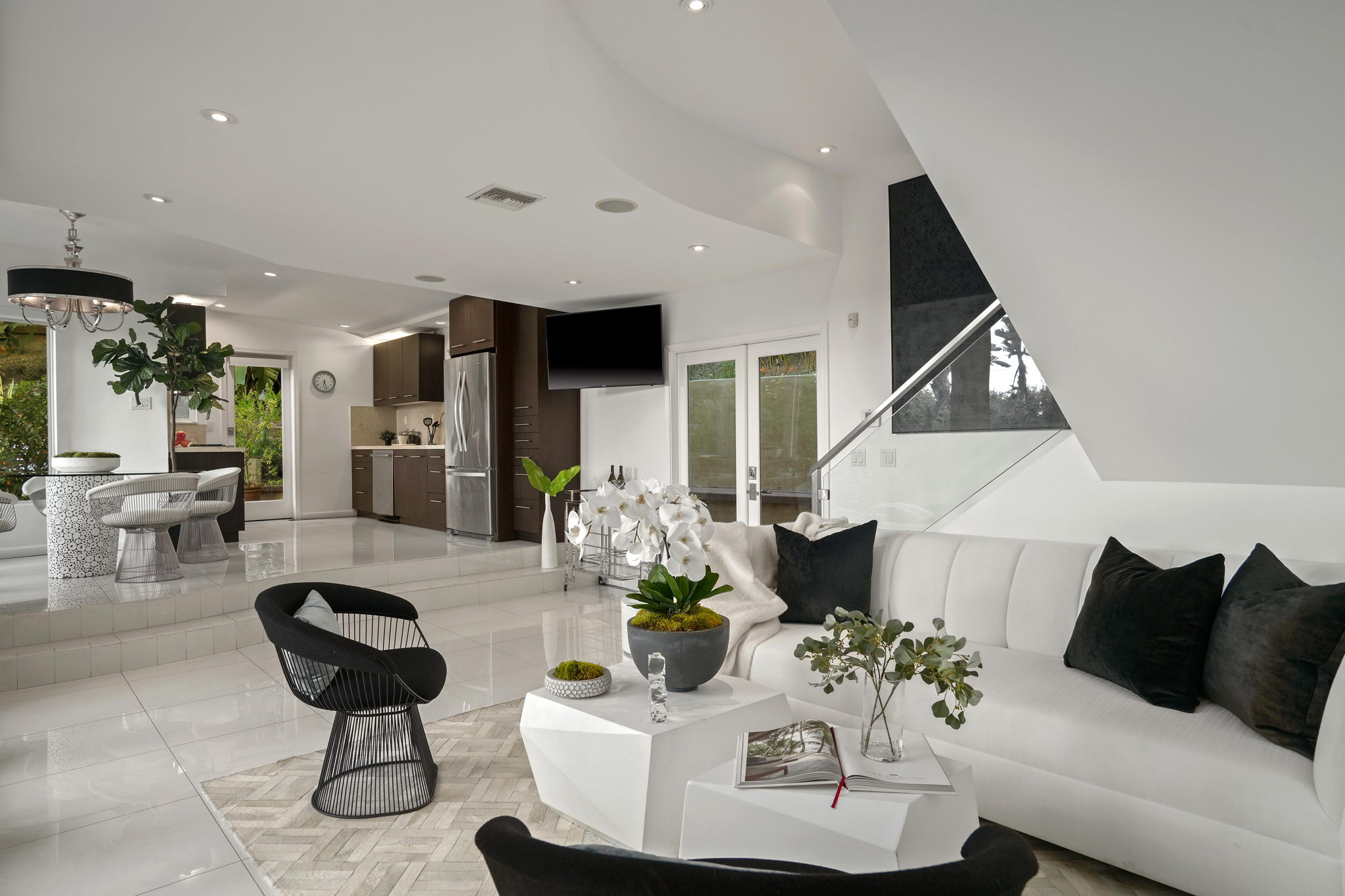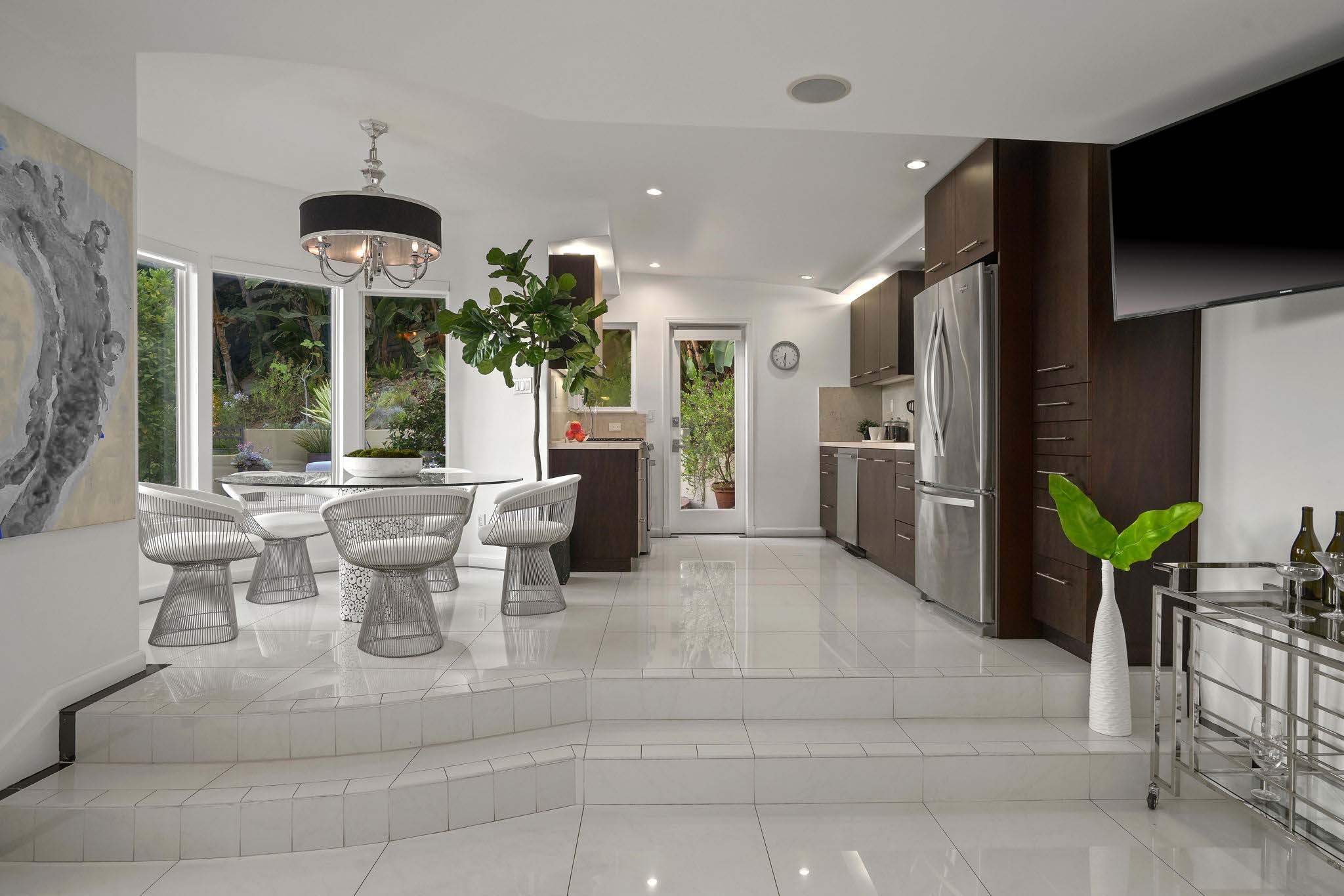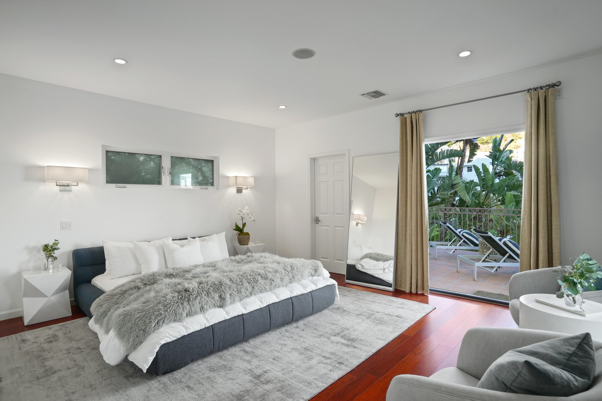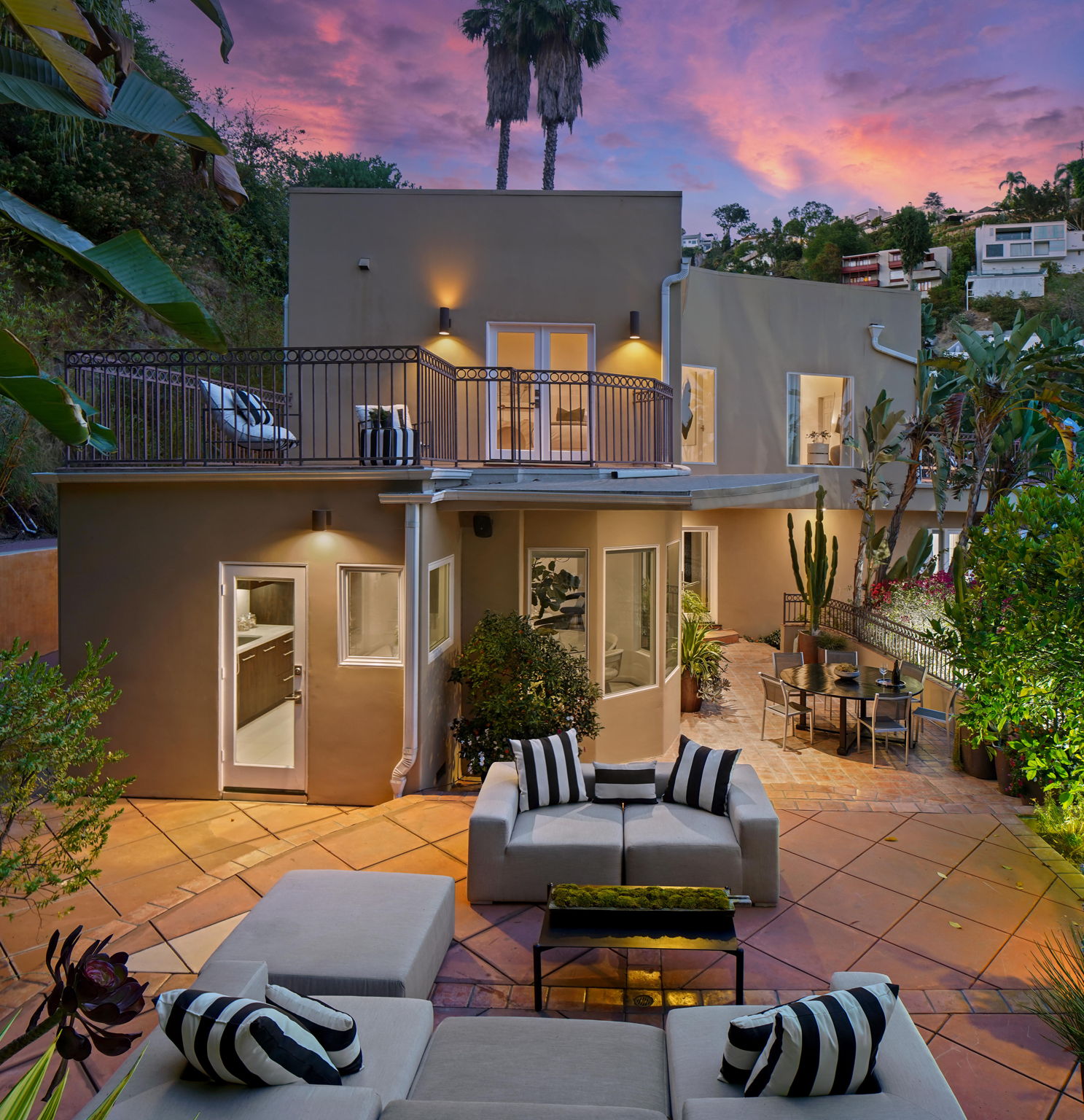 This beautiful contemporary home features a fully landscaped outdoor space that frames expansive city views, while large windows and glass doors provide tremendous natural light and a luxurious California indoor/outdoor living space. The main level offers an open floor plan with a family room, dining area, and chef's kitchen boasting recently upgraded appliances and countertops. Upstairs the rare dual primary suites have walk-in closets and newly installed floor-to-ceiling windows that showcase the city lights. Other features include high ceilings throughout, a huge patio that is optimal for entertaining or relaxing, new sewer lines and irrigation systems, automatic blinds, and a 2-car garage. There is also a small separate guest bedroom with a renovated bathroom.