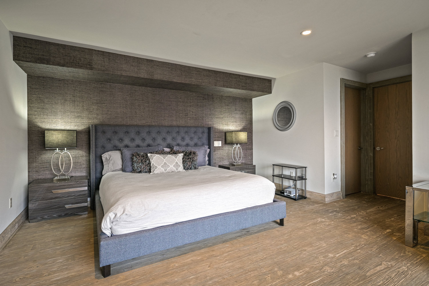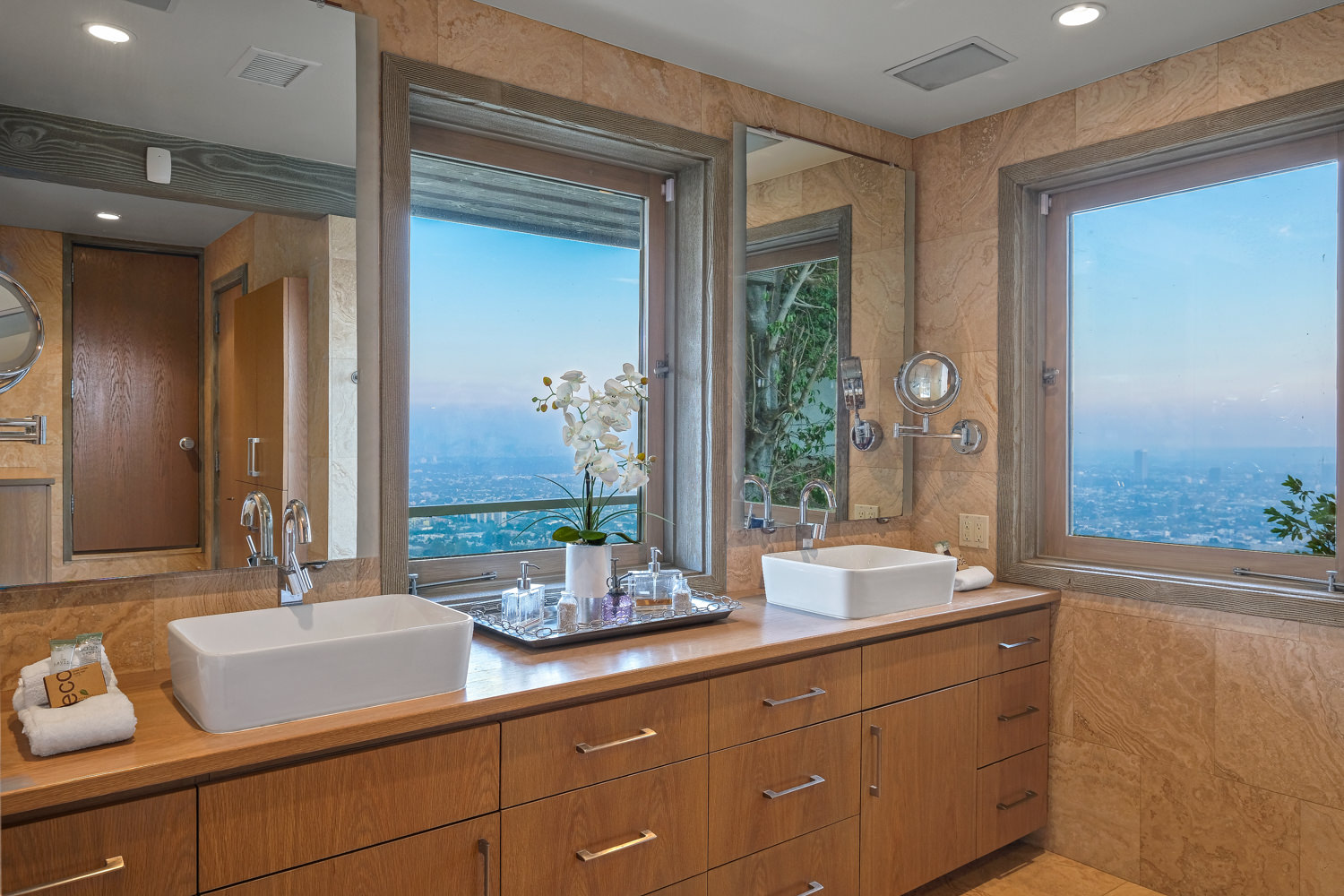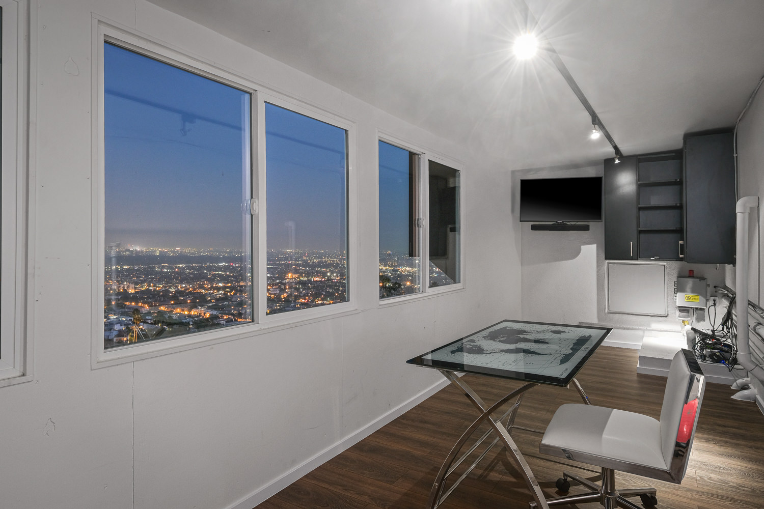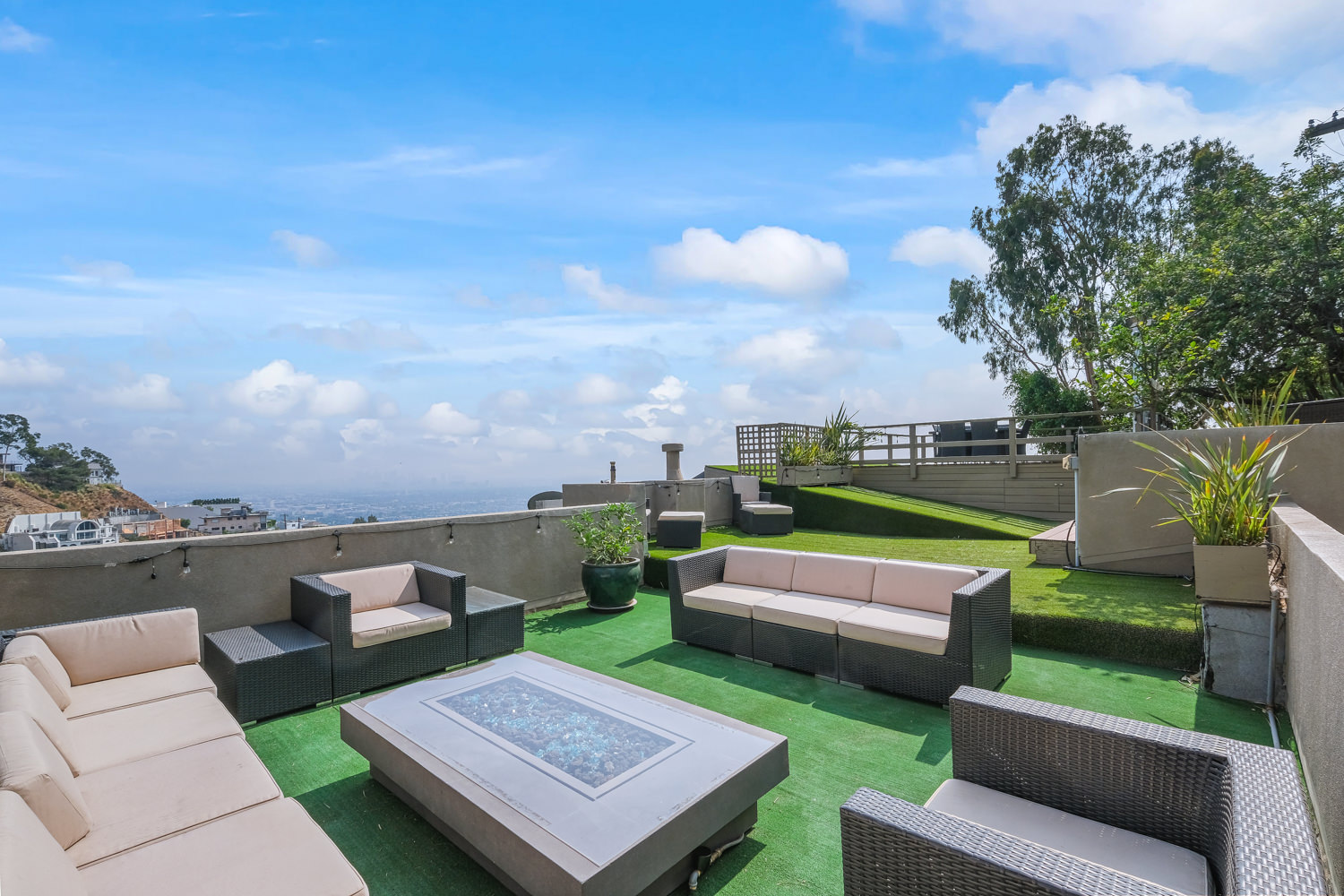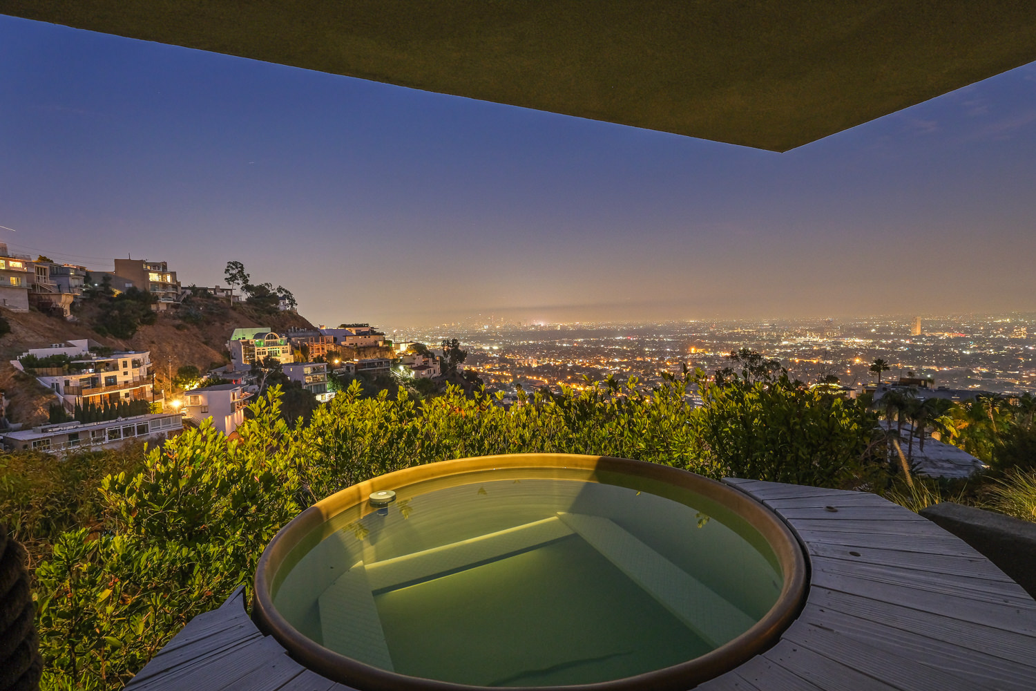 Nestled just above the Sunset Strip with commanding jetliner views from downtown to the ocean, this impressive 4 bedroom home boasts an open floor plan, high vaulted wood-beamed ceilings, and floor to ceiling glass pockets doors to the outside. The spectacular main level boasts a contemporary kitchen opening to a spacious dining area and family room with a fireplace. Downstairs features a well-appointed owner's suite, sitting room, and large walk-in closet. A wraparound deck, separate office area, private spa, and massive entertainment rooftop create the perfect entertainment lifestyle. 2-car garage, large laundry room, ample storage space, and smart home features.