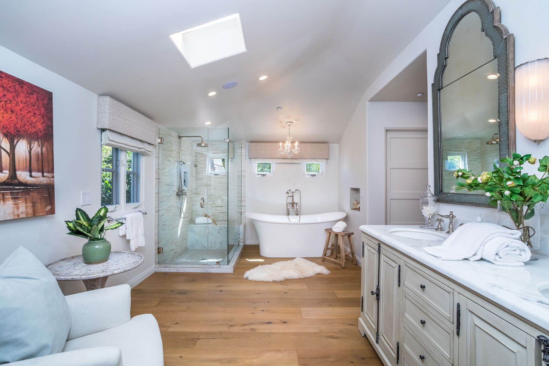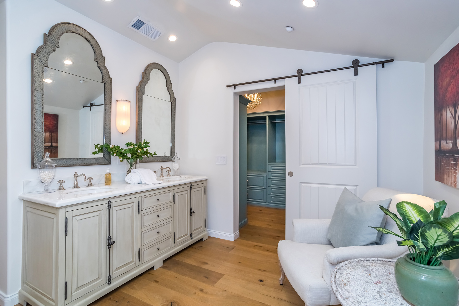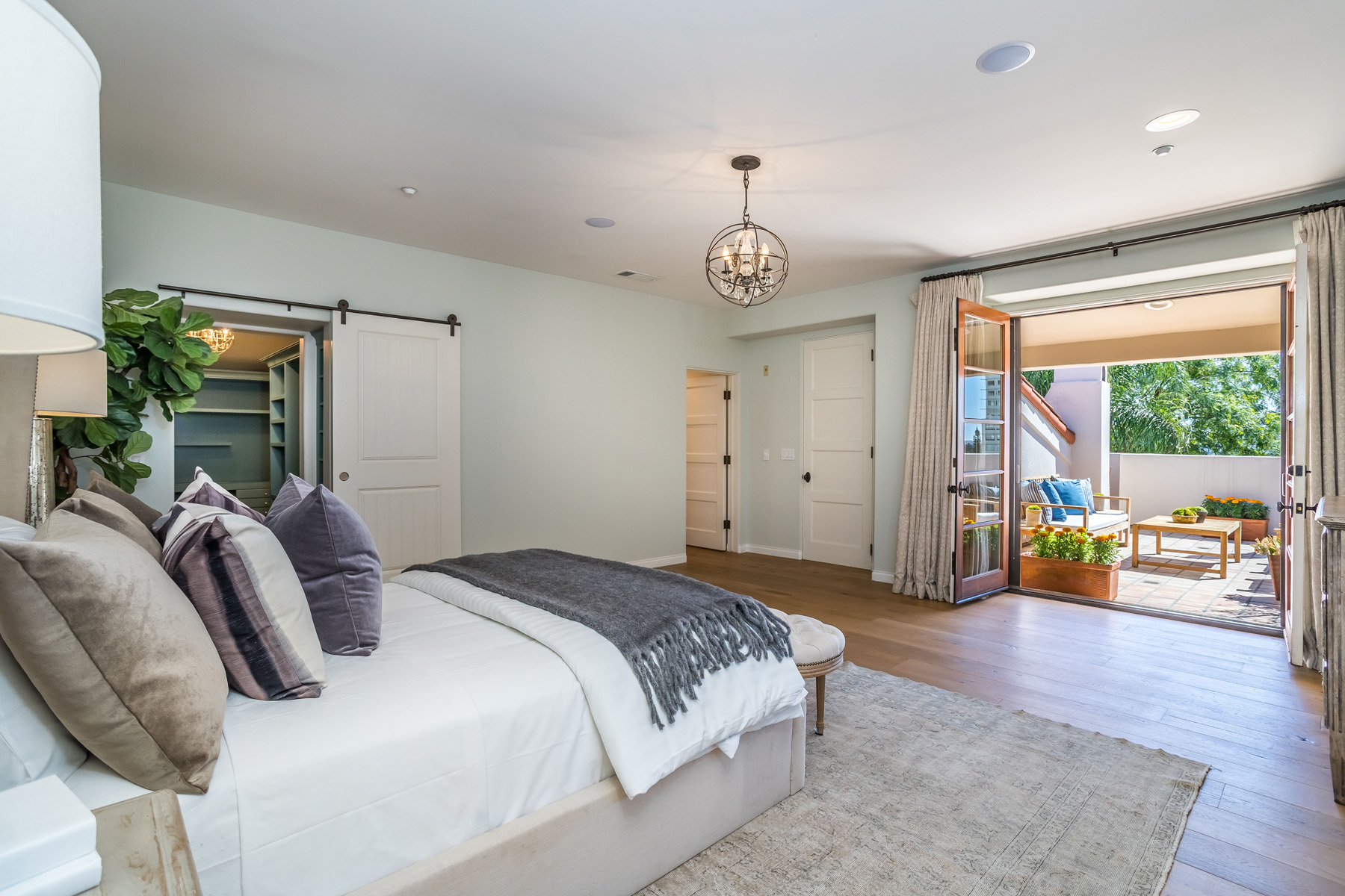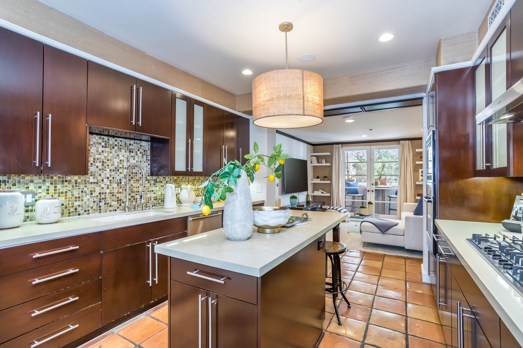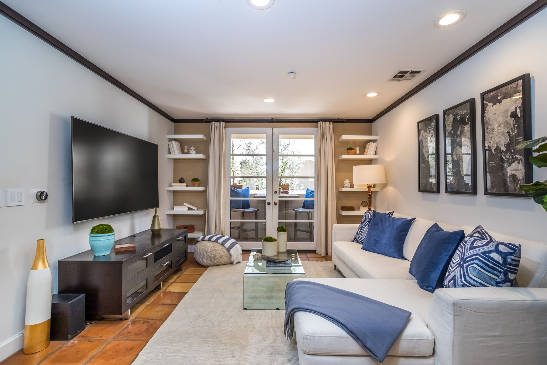Inside one of the most sought-after condo developments in WeHo awaits this rare offering of the absolutely exquisite Penthouse. Accented by elegant Montecito-style designer finishes, this sophisticated townhouse is light, bright, and ultra-spacious, with privacy to match. This 2-story Penthouse boasts 2 bedrooms, 3 baths, and a formal living room with high vaulted ceilings that fill the space with natural light - all this giving this property a single-family feel. The open den off the cook's kitchen provides the perfect flow for entertaining and the second en-suite bedroom on the main level is ideal for overnight visitors. The stunning primary suite features solid white oak flooring, walk-in closet, and a resort-style bathroom with Carrara marble shower, double vanity sinks, and a spa-like bathtub. From the primary suite, French doors open to a large private rooftop patio with South facing views. Side-by-side parking and dedicated storage room at the garage level, with only 12 homes in the development. Villa Cynthia is a classic Old Hollywood-style building with a fountain courtyard and pristine landscaping - a truly spectacular find in one of LA's most desirable neighborhoods.